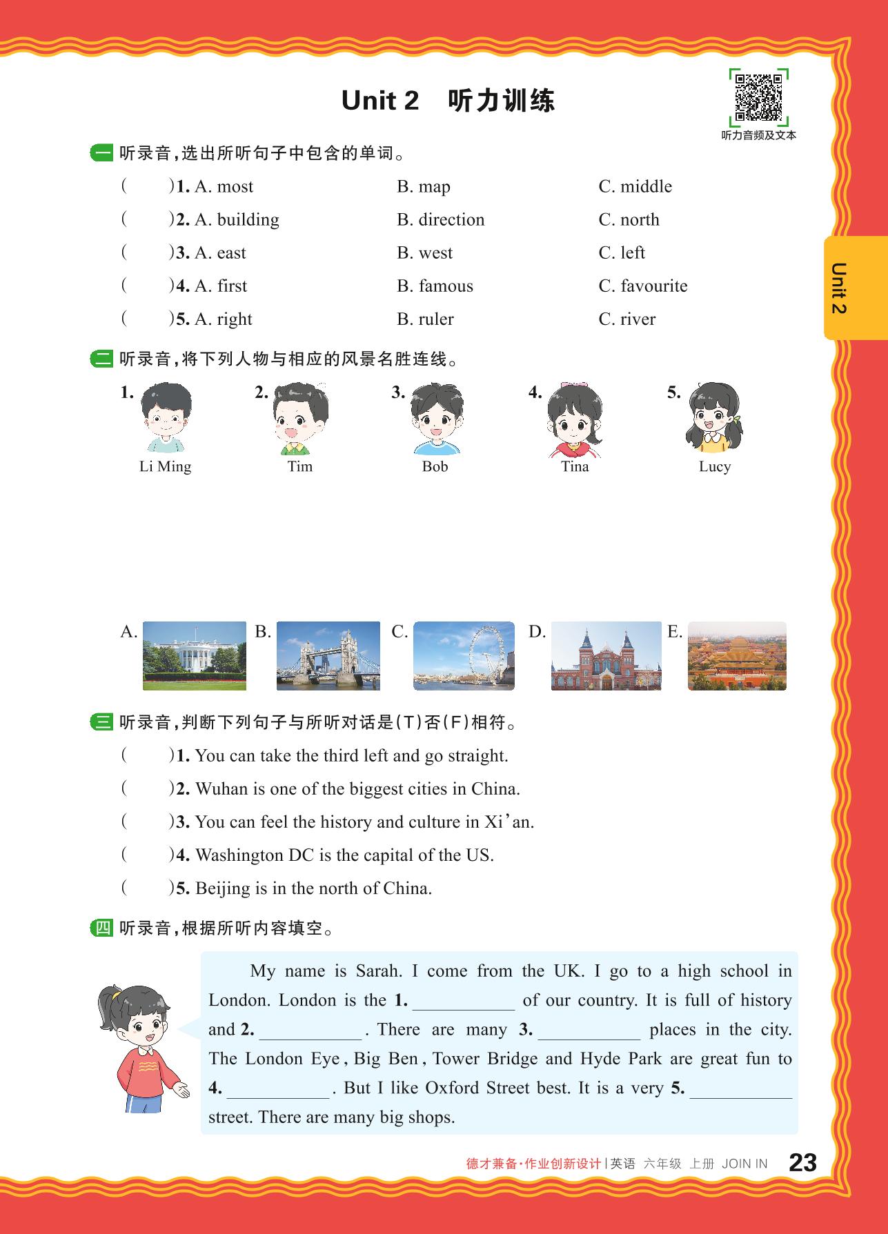 2024秋上册六年级英语剑桥版 Unit 2 听力训练