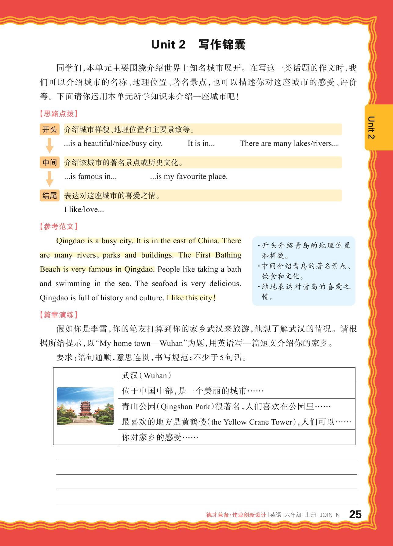2024秋上册六年级英语剑桥版 Unit 2 写作锦囊