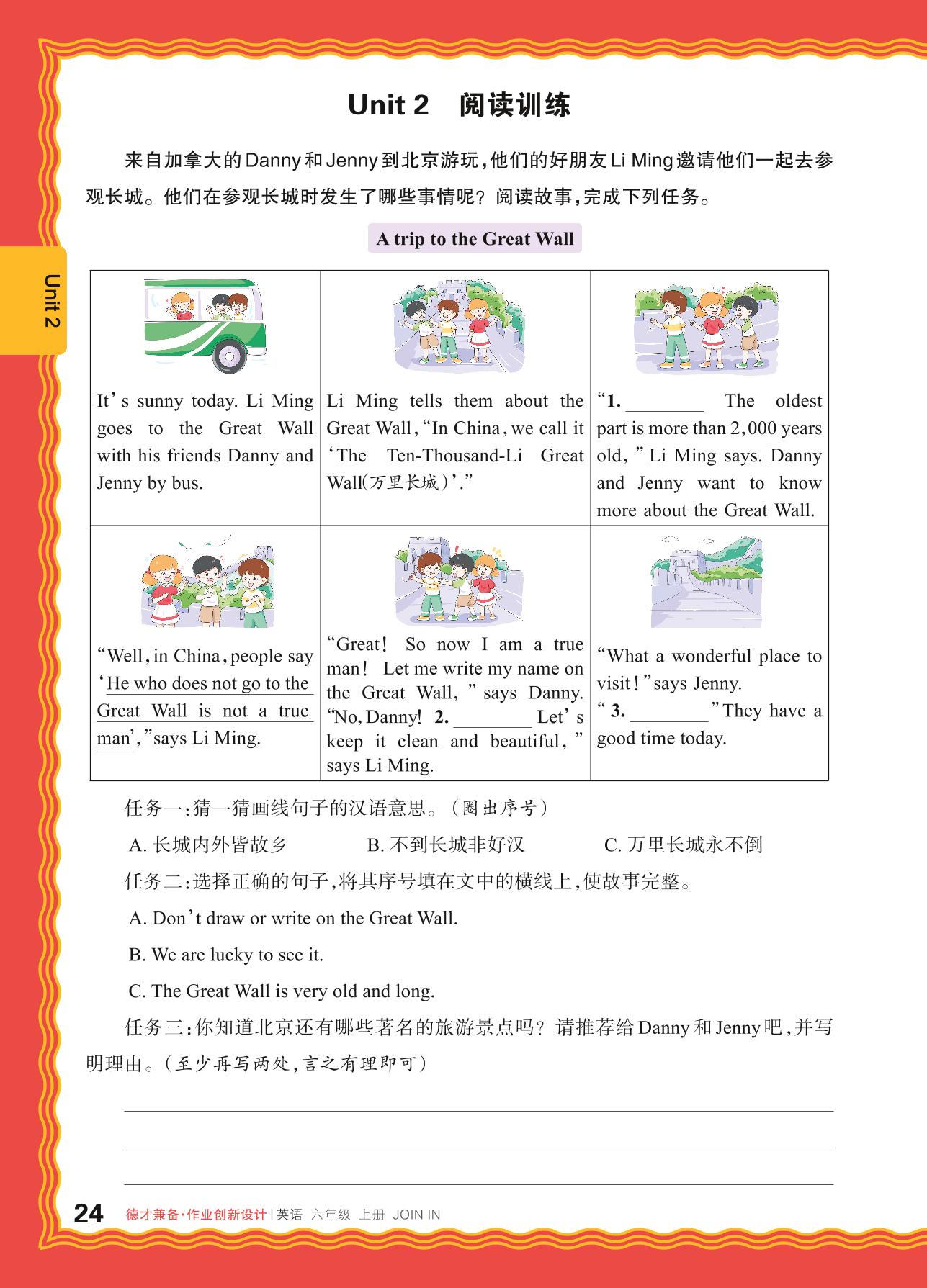 2024秋上册六年级英语剑桥版 Unit 2 阅读训练