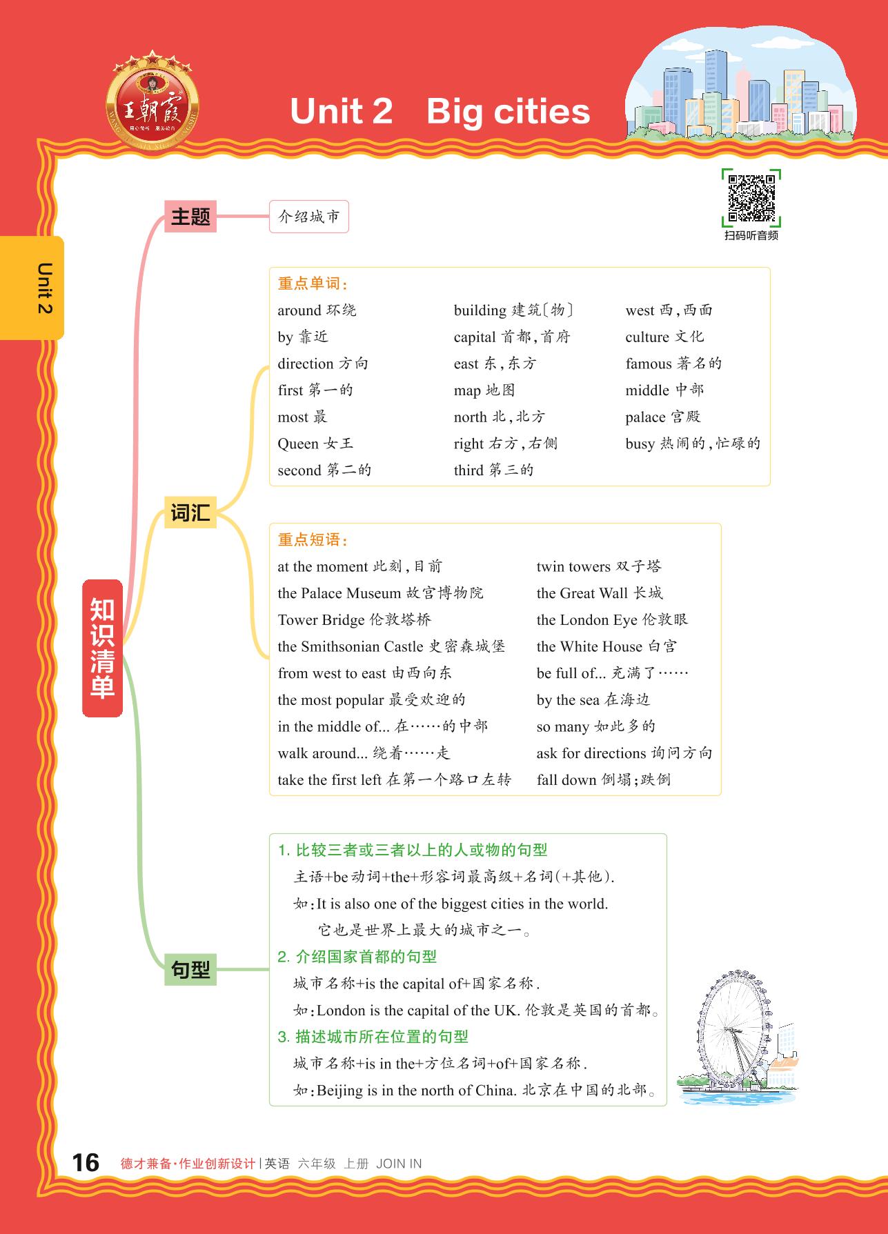 2024秋上册六年级英语剑桥版 Unit 2 知识清单