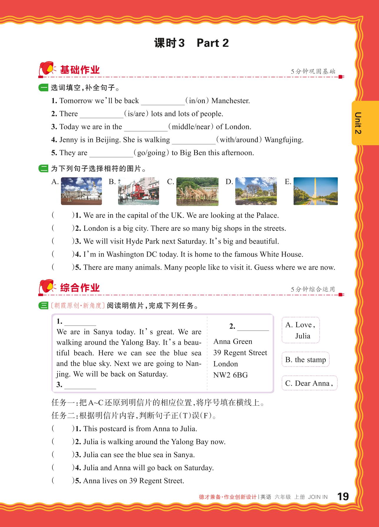 2024秋上册六年级英语剑桥版 Unit 2—课时 3 Part 2