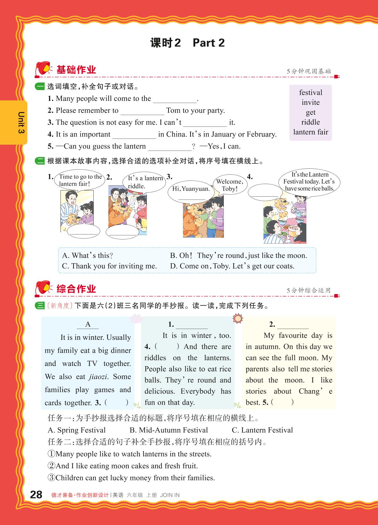 2024秋上册六年级英语剑桥版 Unit 3—课时 2 Part 2