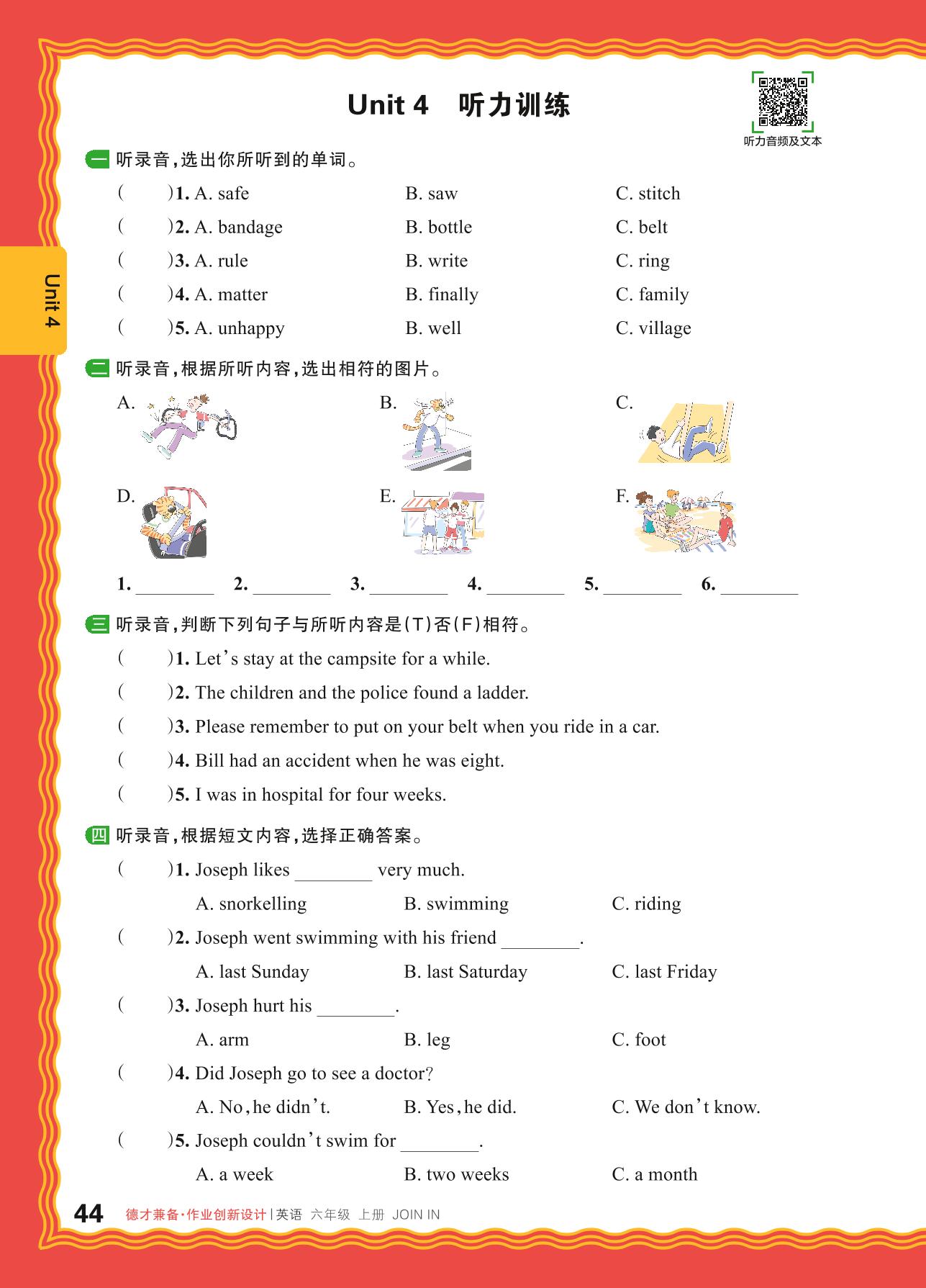2024秋上册六年级英语剑桥版 Unit 4 听力训练