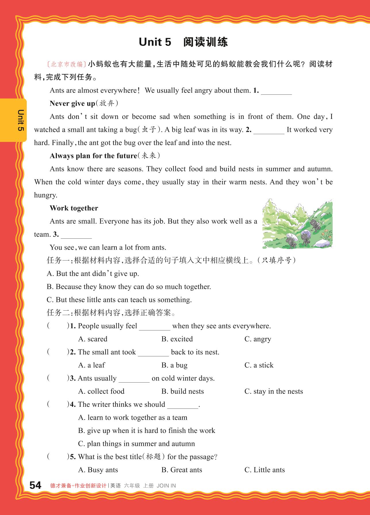 2024秋上册六年级英语剑桥版 Unit 5 阅读训练