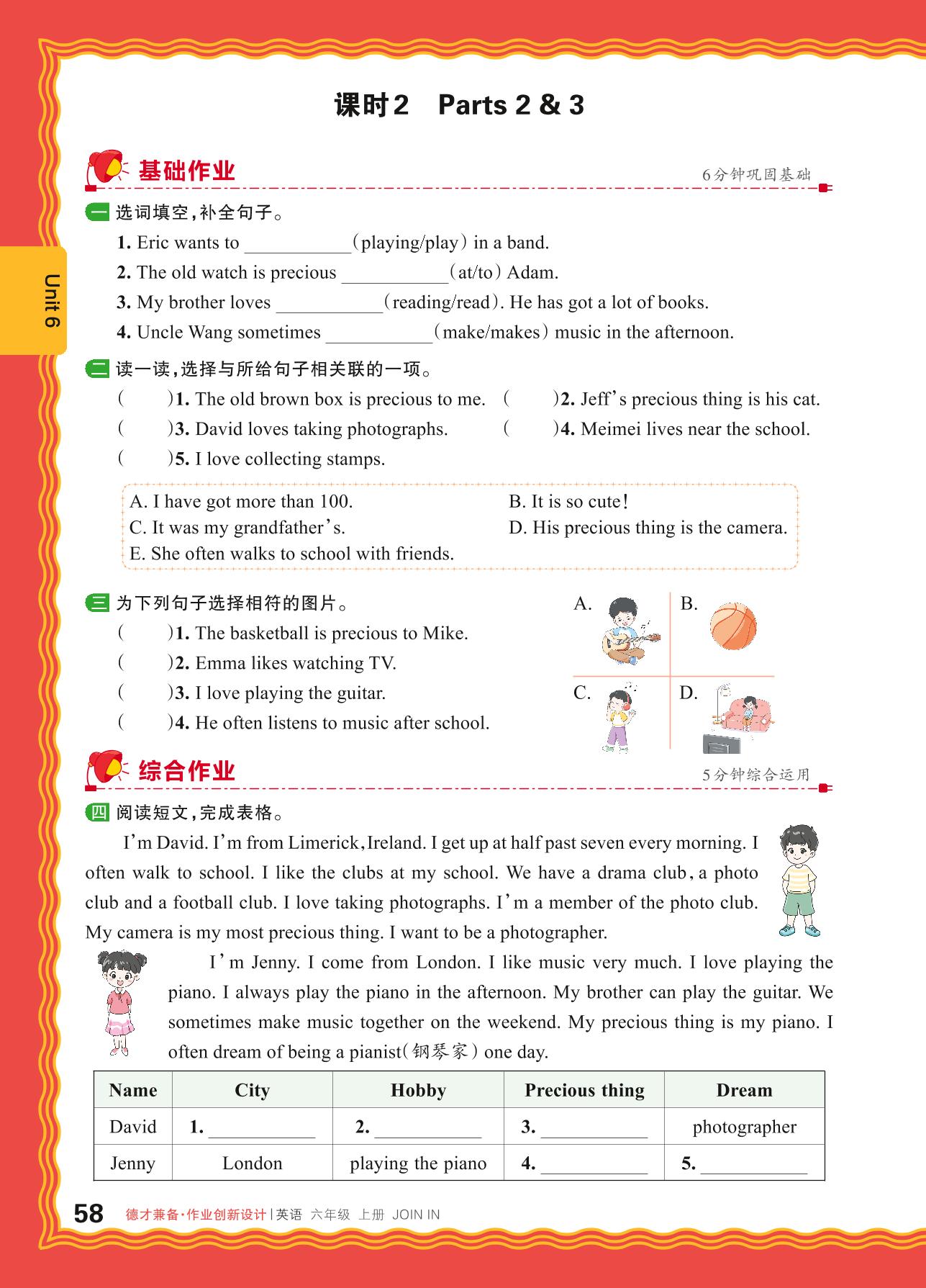 2024秋上册六年级英语剑桥版 Unit 6—课时 2 Parts 2 & 3