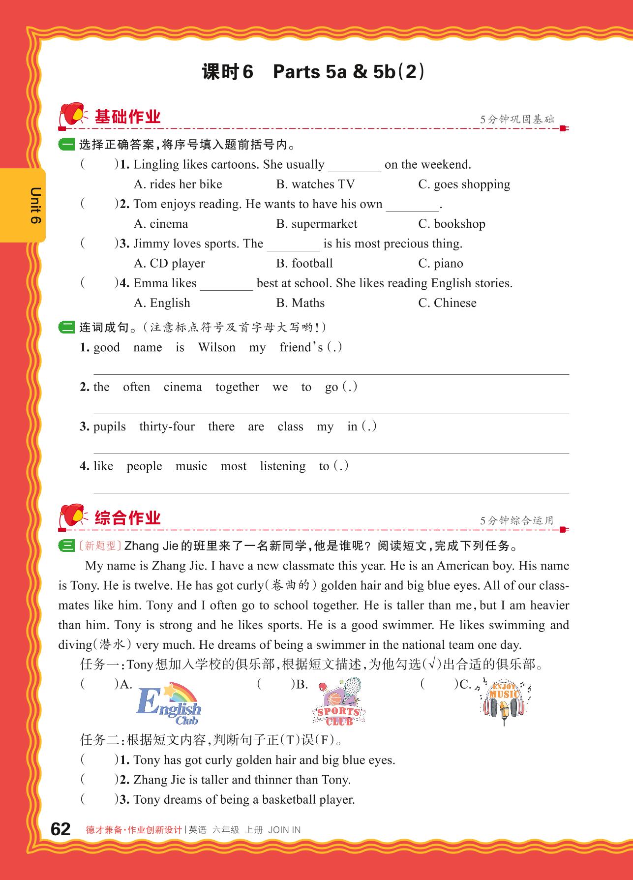 2024秋上册六年级英语剑桥版 Unit 6—课时 6 Parts 5a & 5b(2)