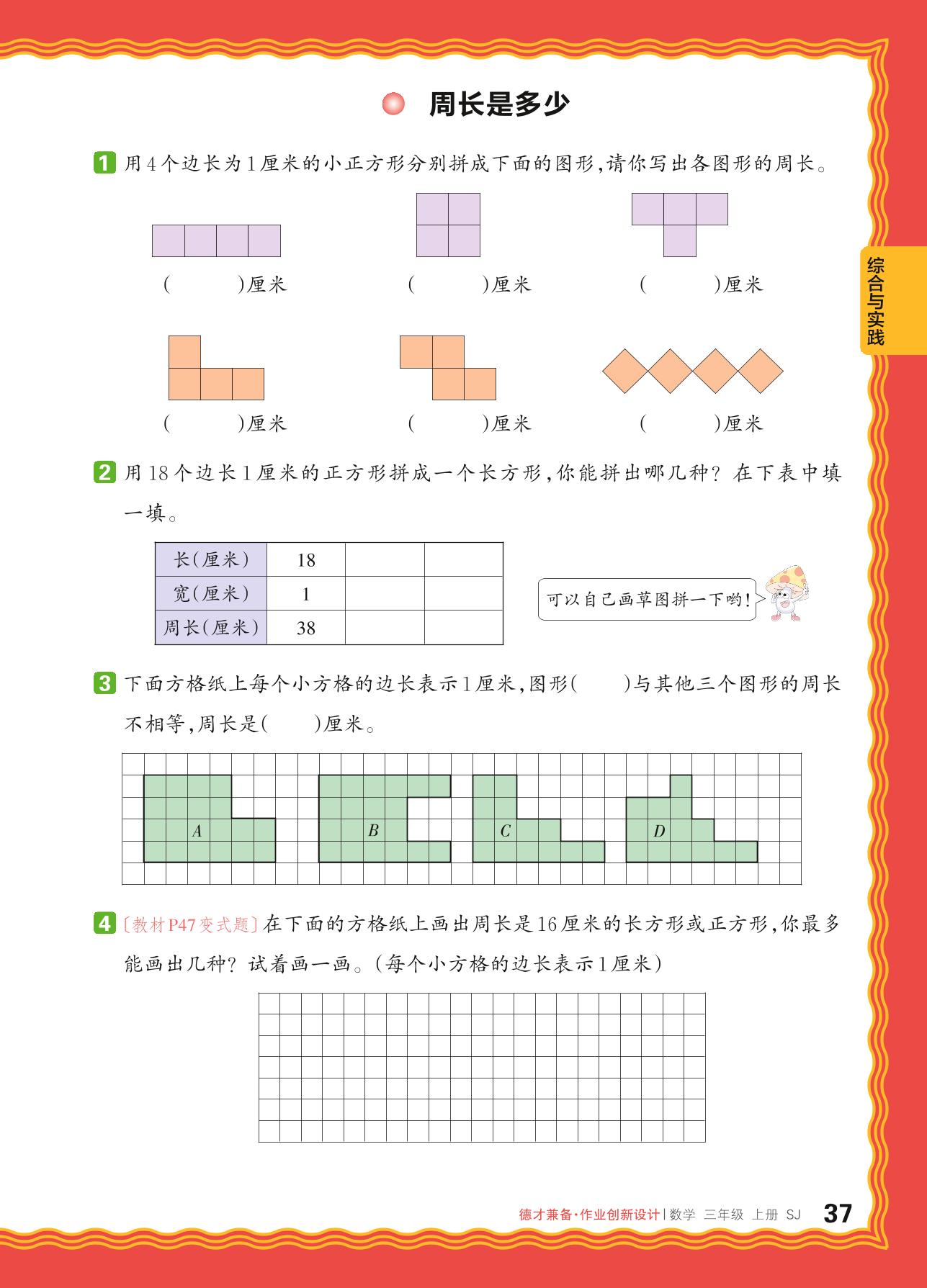 2024秋上册三年级数学苏教版 综合实践——周长是多少