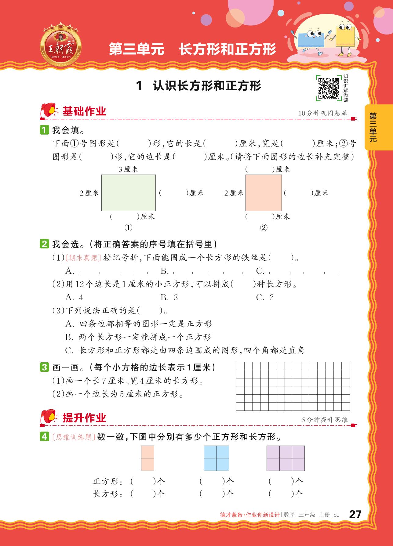 2024秋上册三年级数学苏教版 第三单元 长方形和正方形——1. 认识长方形和正方形_R240820135439426