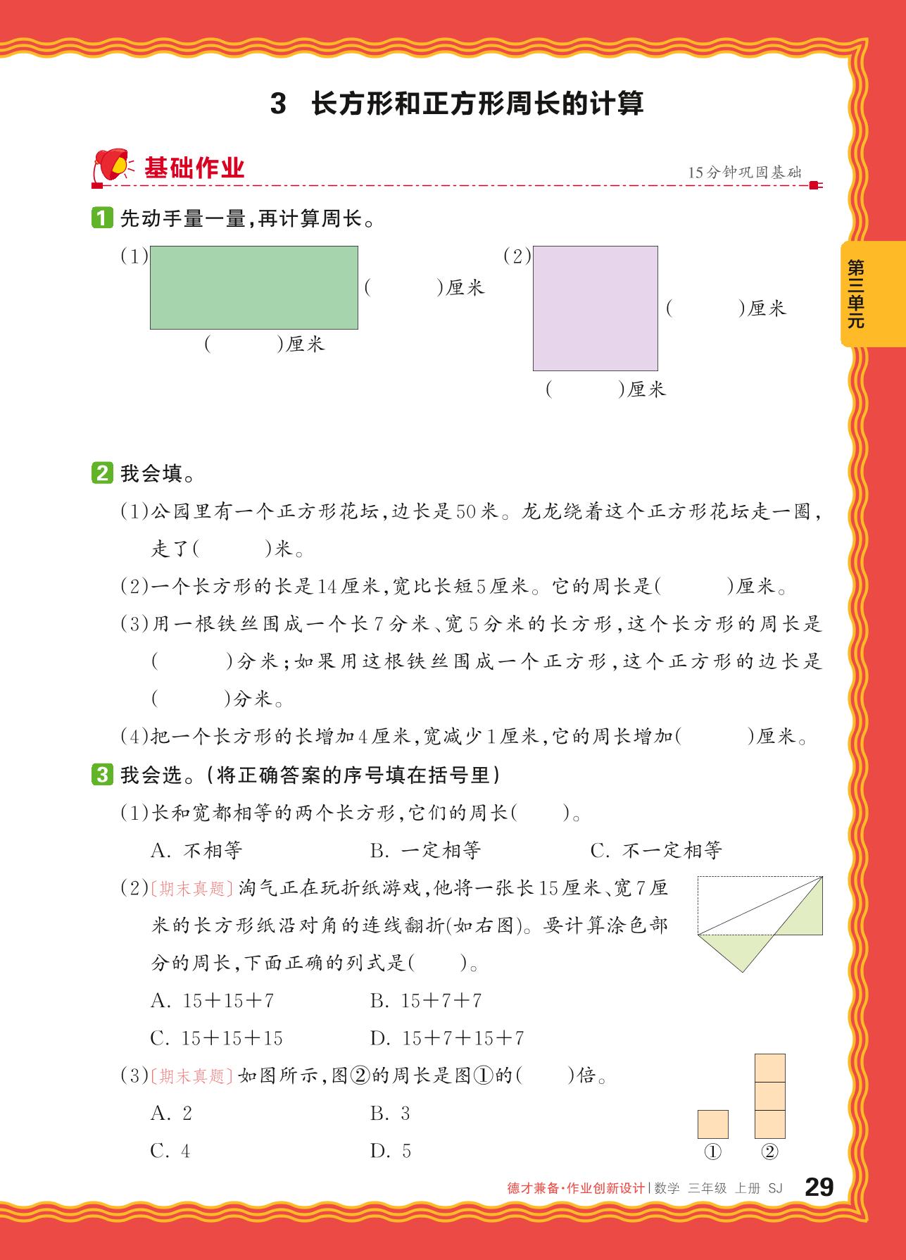 2024秋上册三年级数学苏教版 第三单元 长方形和正方形——3. 长方形和正方形周长的计算_R240820135440304