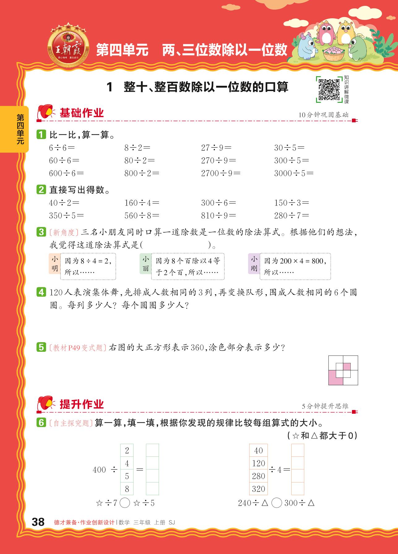 2024秋上册三年级数学苏教版 第四单元 两、三位数除以一位数——1. 整十、整百数除以一位数的口算_R240820135442623