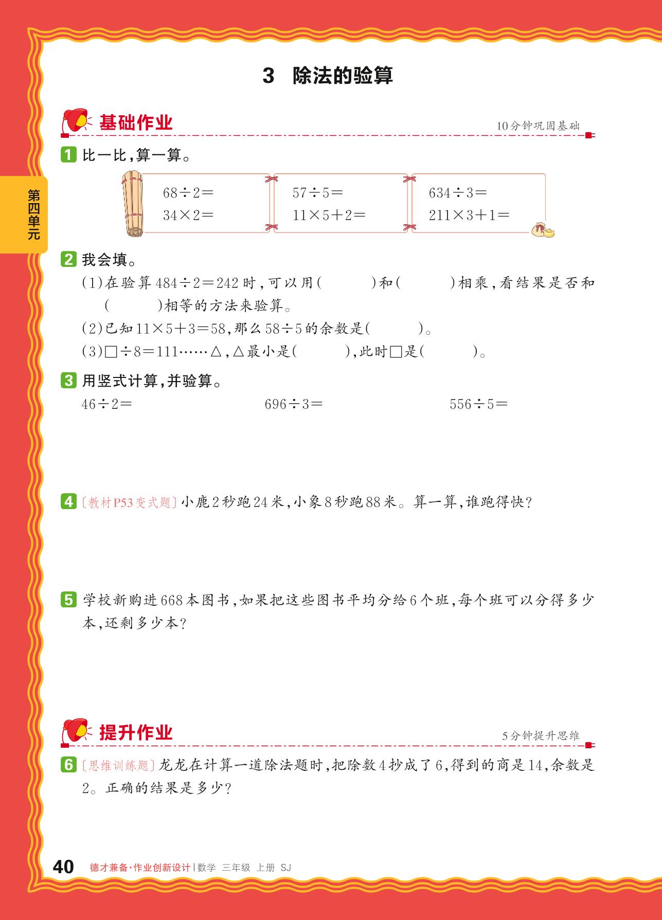 2024秋上册三年级数学苏教版 第四单元 两、三位数除以一位数——3. 除法的验算_R240820135442309