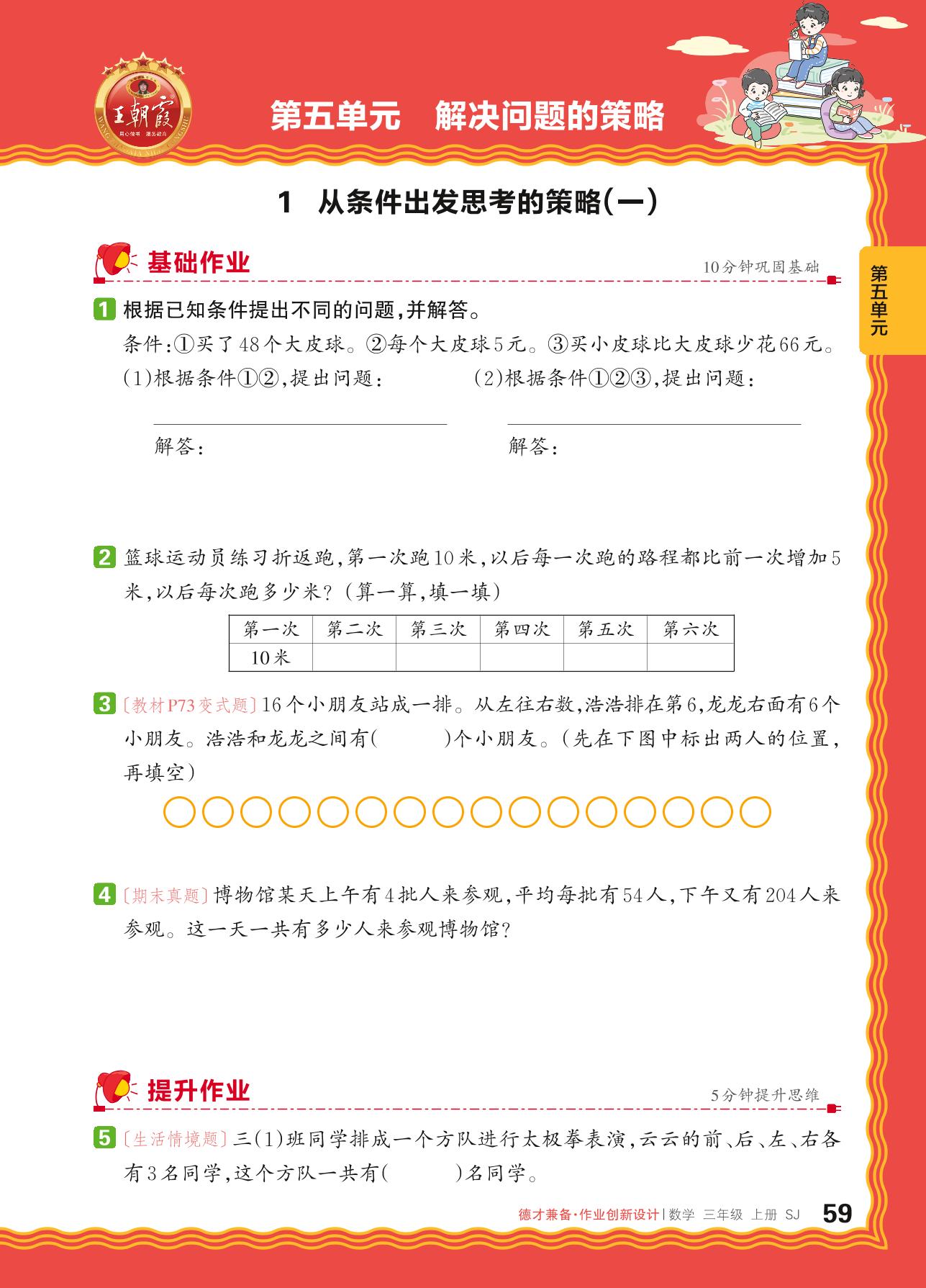 2024秋上册三年级数学苏教版 第五单元 解决问题的策略——1. 从条件出发思考的策略(一)
