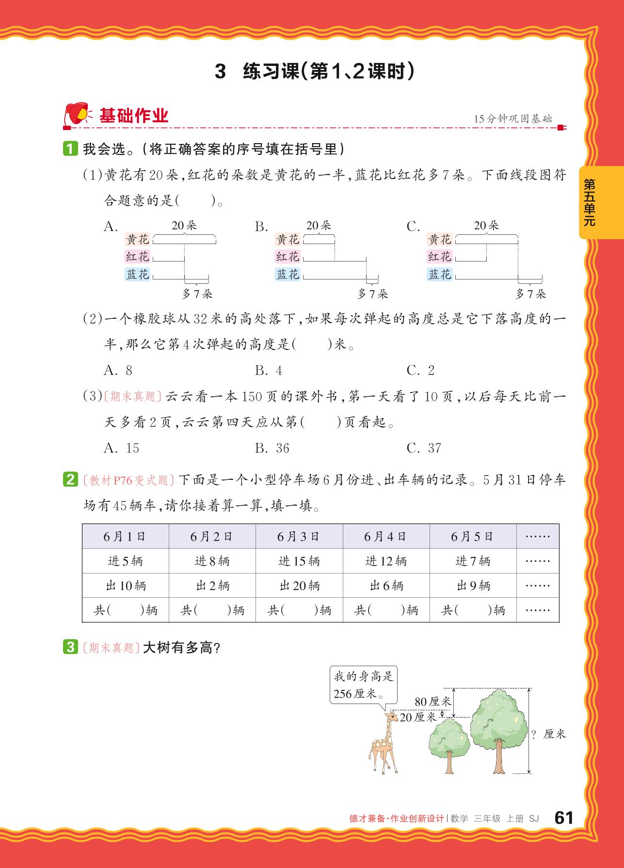 2024秋上册三年级数学苏教版 第五单元 解决问题的策略——3. 从条件出发思考的策略练习课