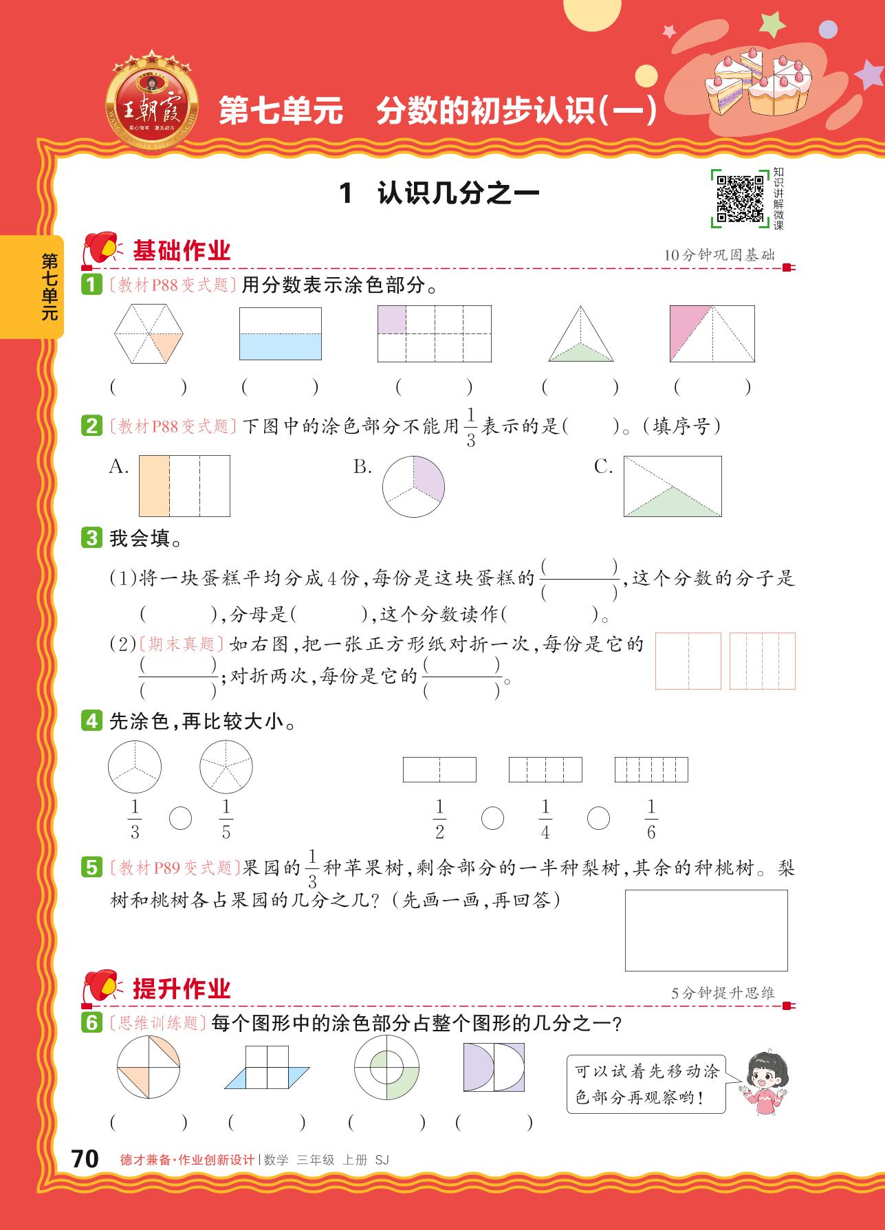 2024秋上册三年级数学苏教版 第七单元 分数的初步认识(一)——1. 认识几分之一_R240820135450789