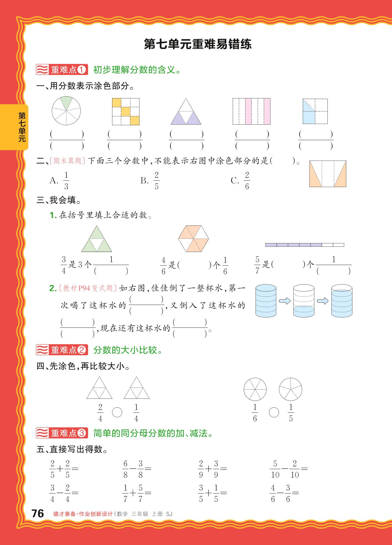 2024秋上册三年级数学苏教版 第七单元重难易错练