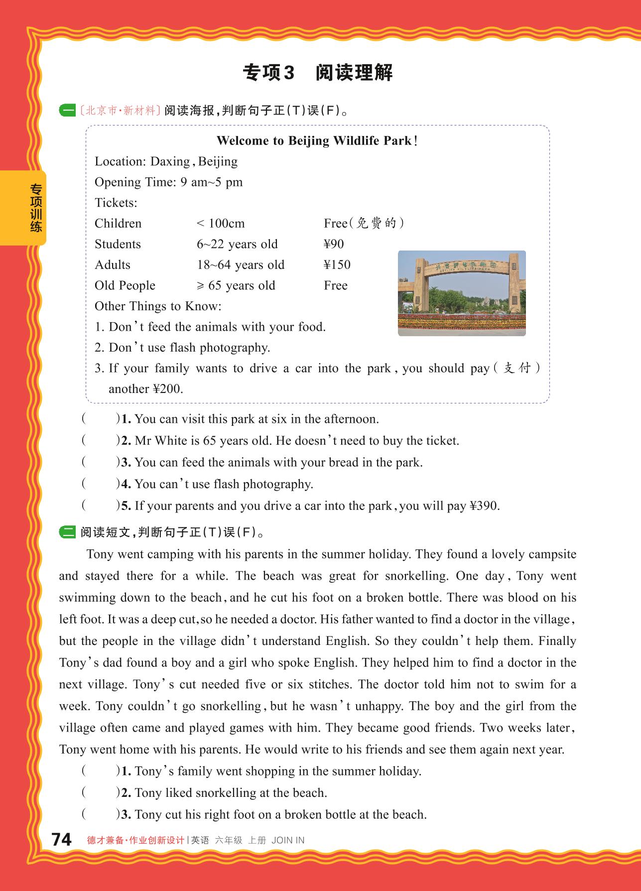 2024秋上册六年级英语剑桥版 期末专项卷DC版·阅读理解【3】