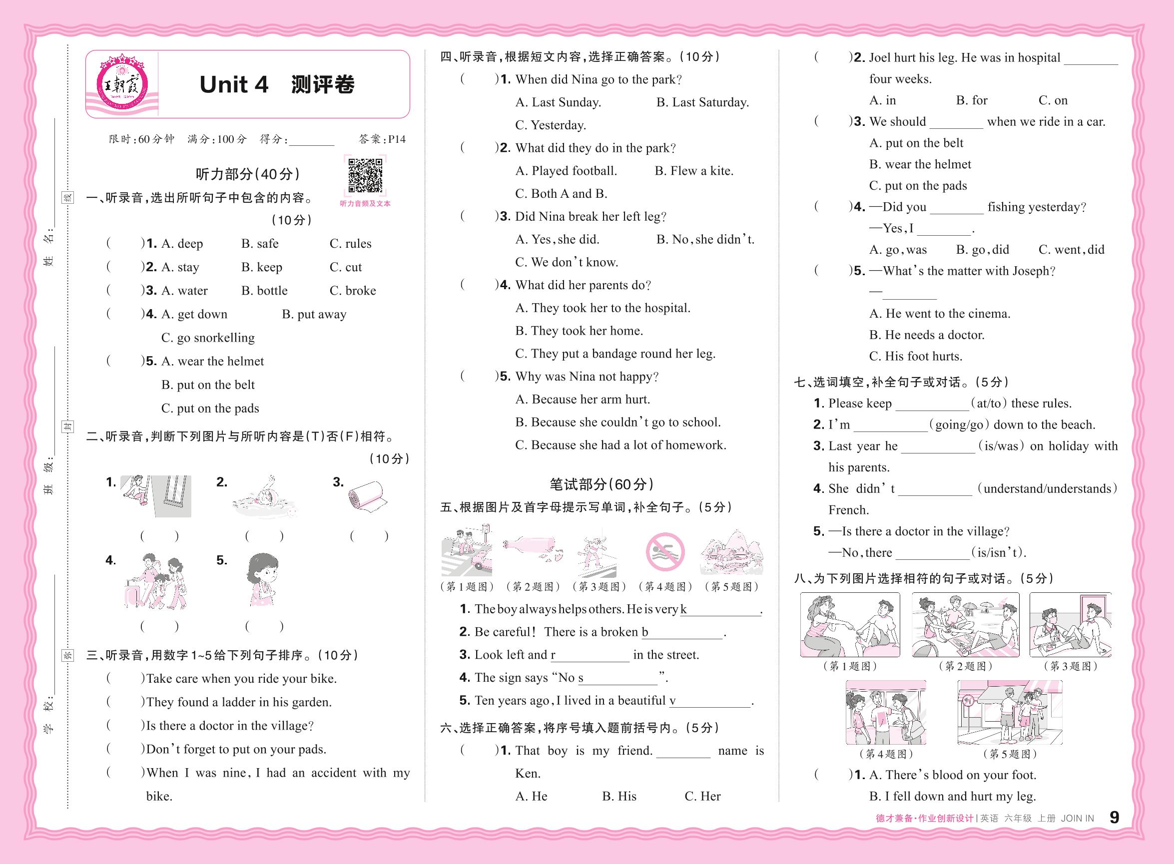 2024秋上册六年级英语剑桥版 Unit 4 测评卷