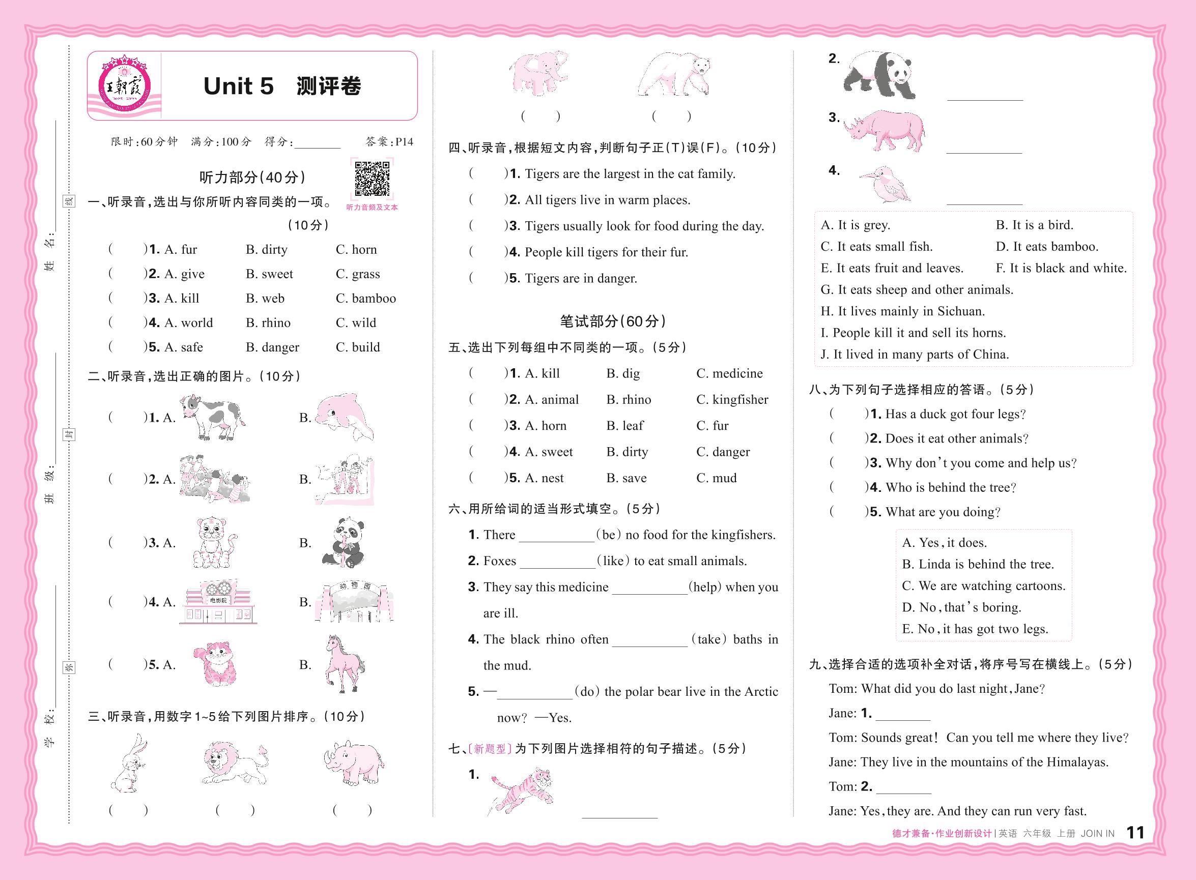 2024秋上册六年级英语剑桥版 Unit 5 测评卷