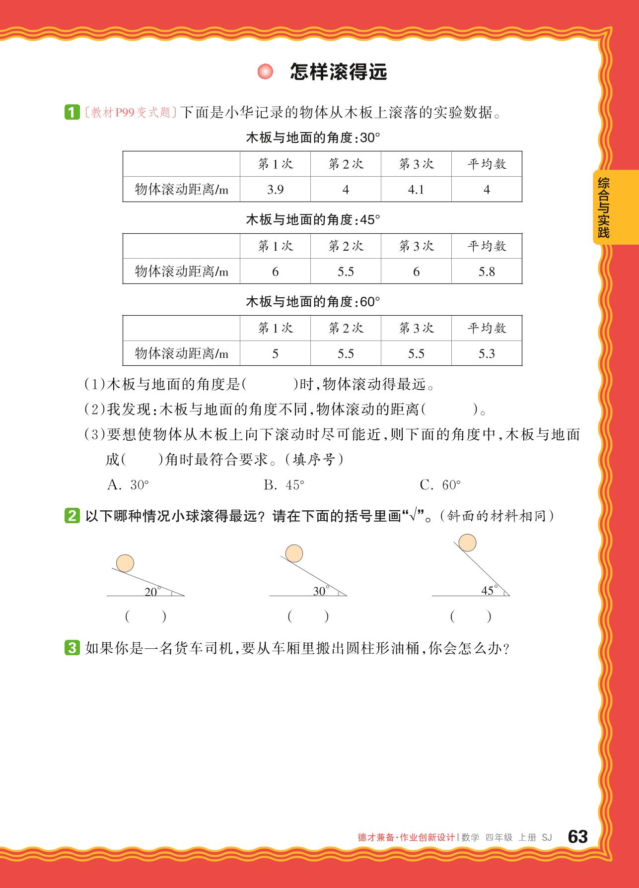2024秋上册四年级数学苏教版 综合与实践——怎样滚得远