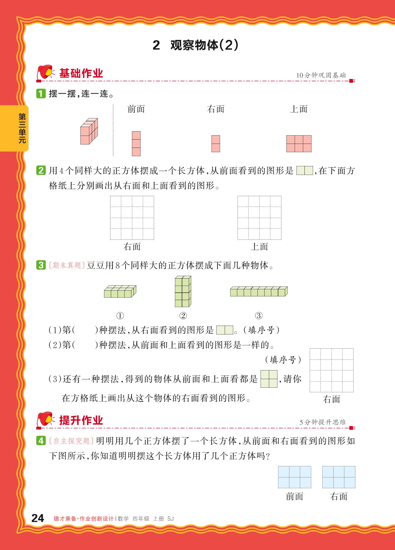 2024秋上册四年级数学苏教版 第三单元 观察物体——2. 观察物体(2)_R240820141009676