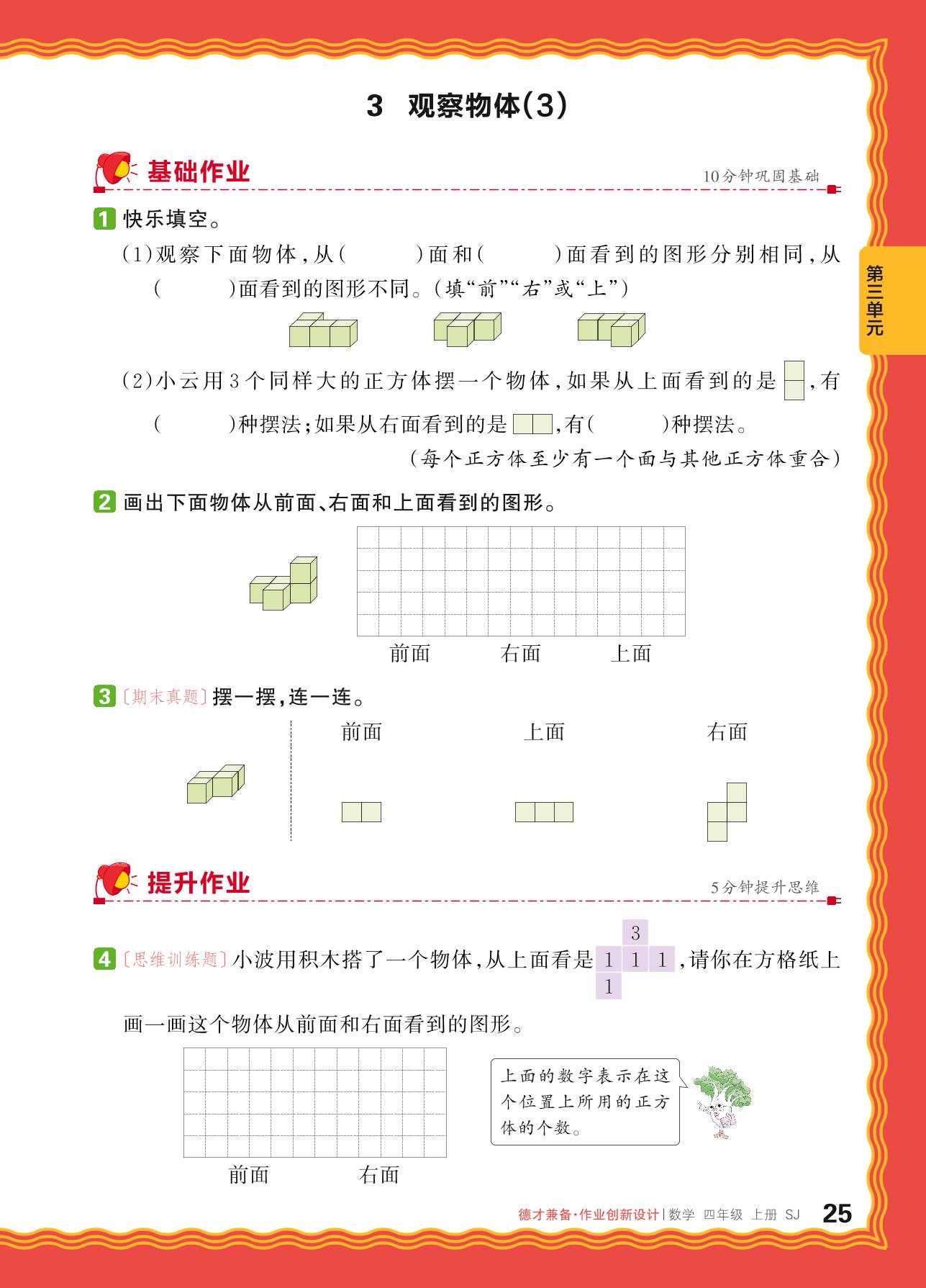 2024秋上册四年级数学苏教版 第三单元 观察物体——3. 观察物体(3)_R240820141010134