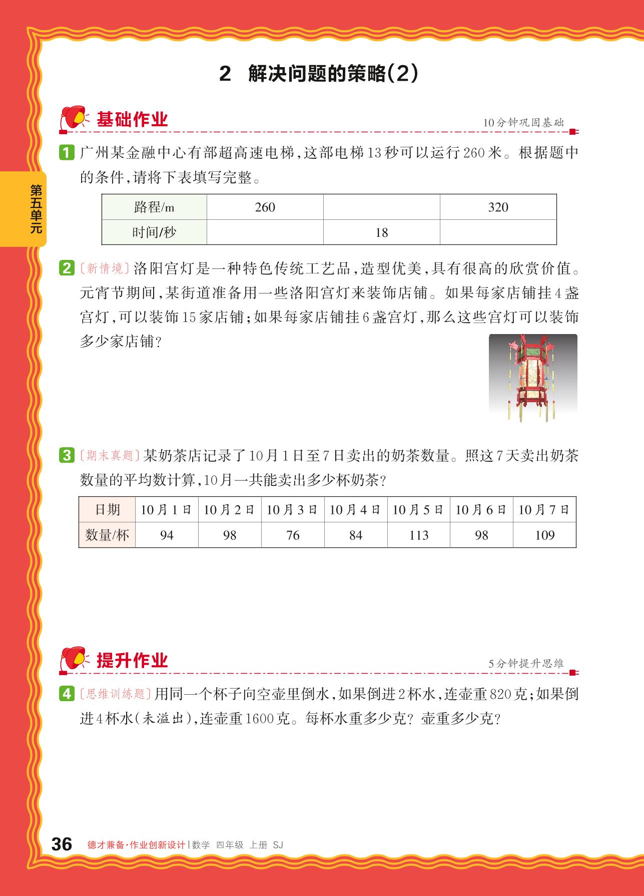 2024秋上册四年级数学苏教版 第五单元 解决问题的策略——2. 解决问题的策略(2)_R240820141014743