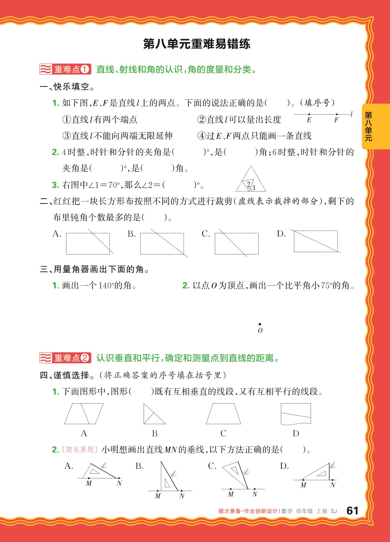 2024秋上册四年级数学苏教版 第八单元重难易错练