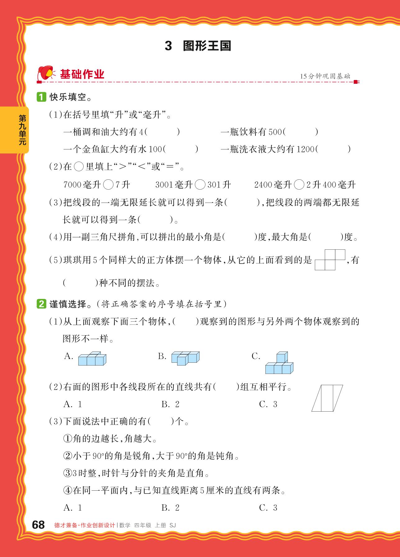 2024秋上册四年级数学苏教版 第九单元 整理与复习——3. 图形王国