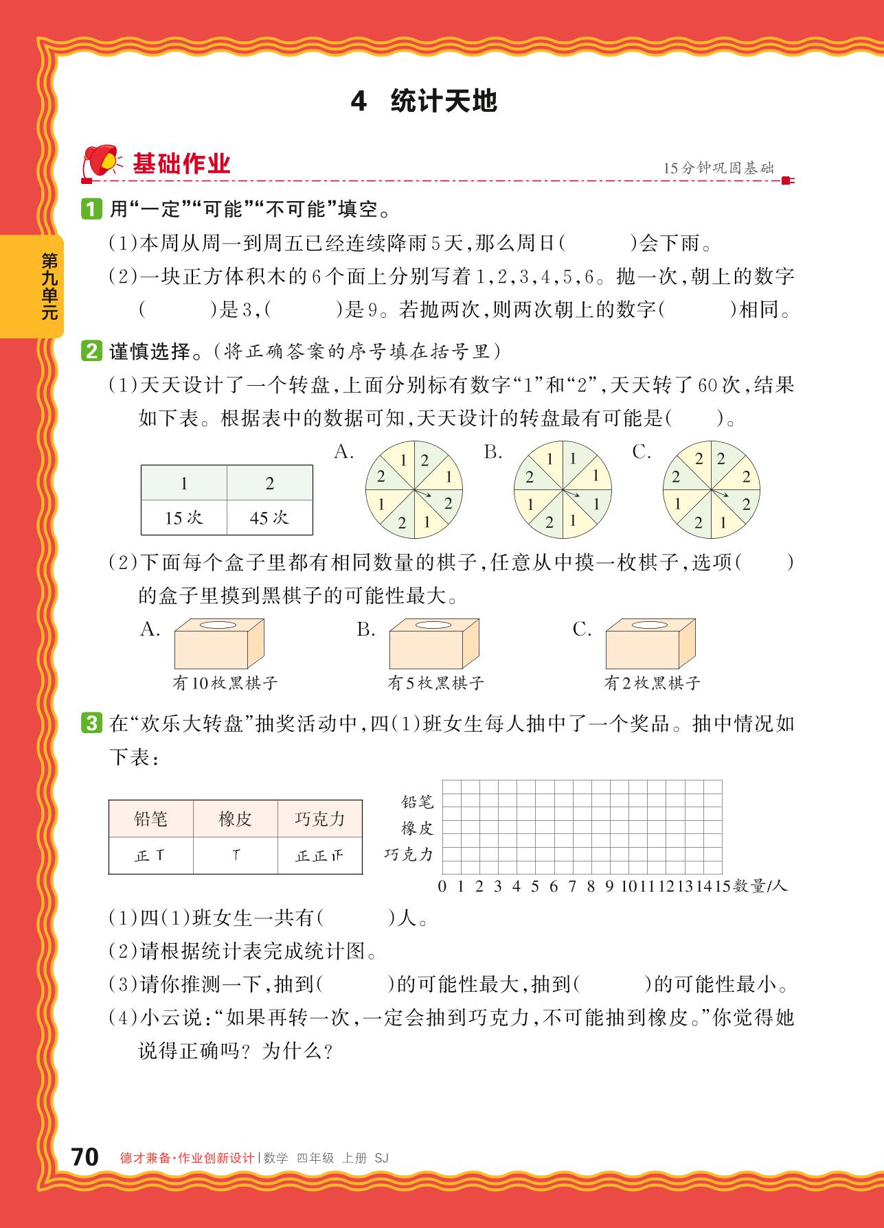 2024秋上册四年级数学苏教版 第九单元 整理与复习——4. 统计天地