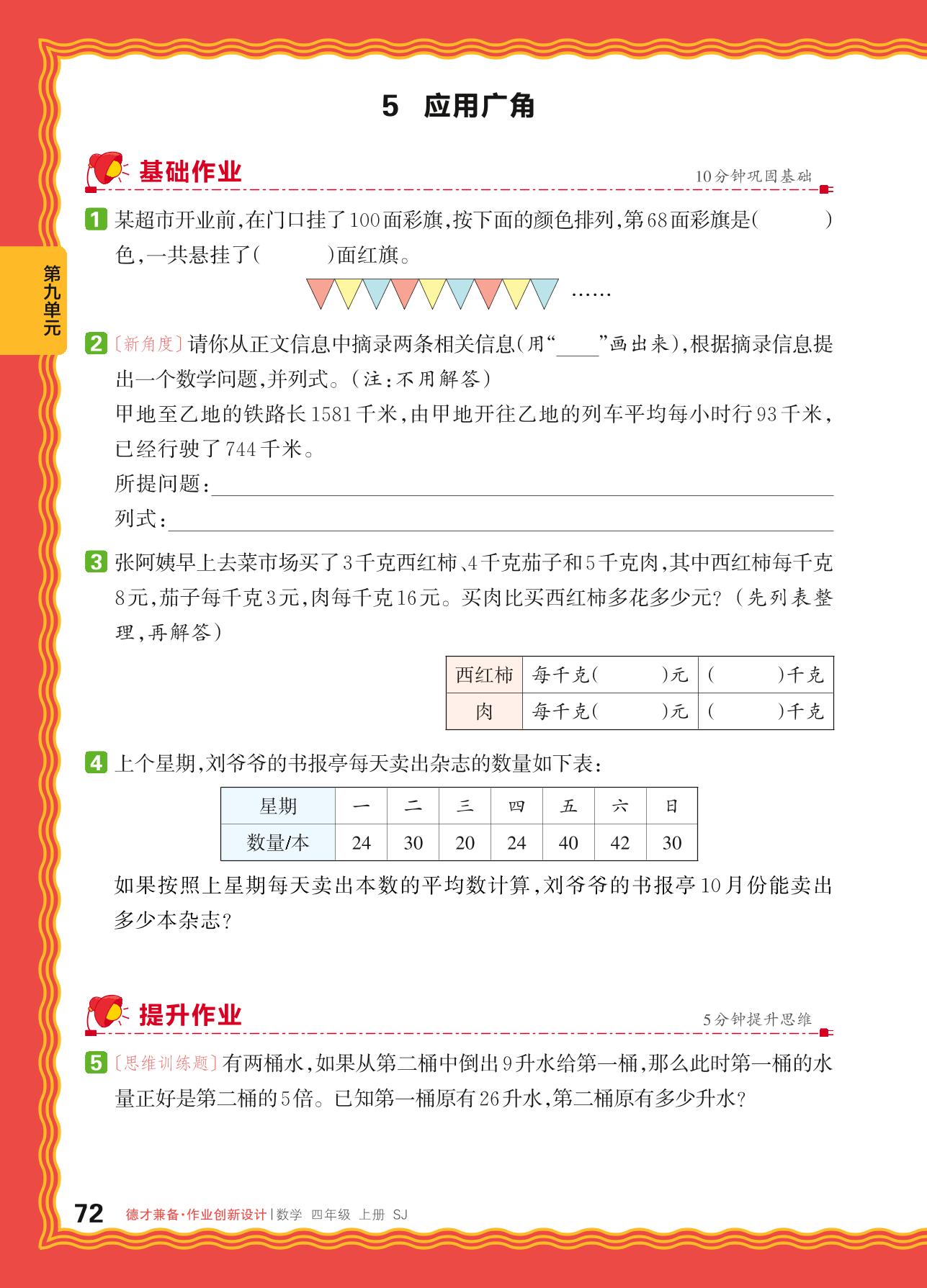 2024秋上册四年级数学苏教版 第九单元 整理与复习——5. 应用广角