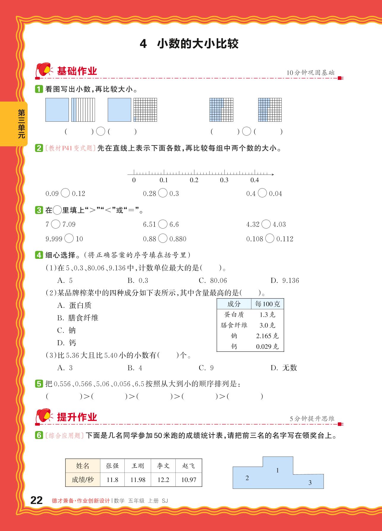2024秋上册五年级数学苏教版 第三单元 小数的意义和性质——4. 小数的大小比较_R240820142437861
