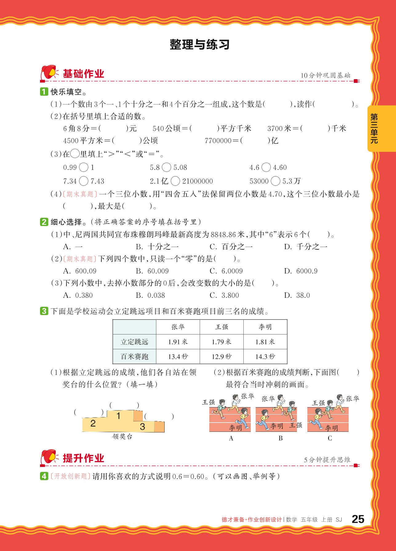 2024秋上册五年级数学苏教版 第三单元 小数的意义和性质——整理与练习