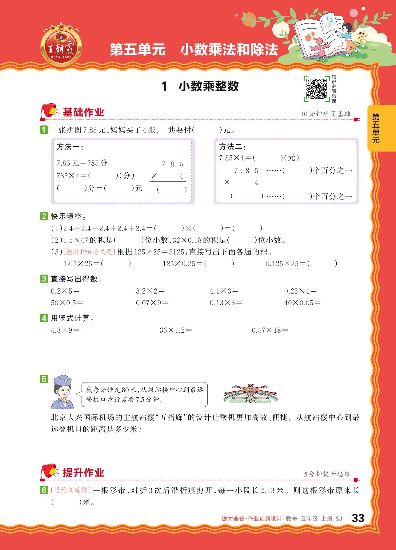 2024秋上册五年级数学苏教版 第五单元 小数乘法和除法——1. 小数乘整数_R240820142442061