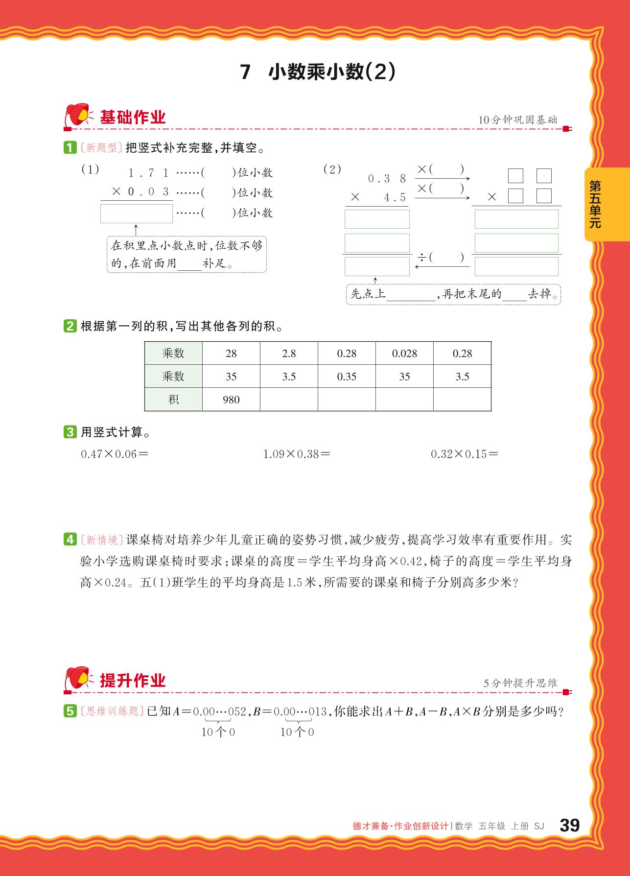 2024秋上册五年级数学苏教版 第五单元 小数乘法和除法——7. 小数乘小数(2)_R240820142444132