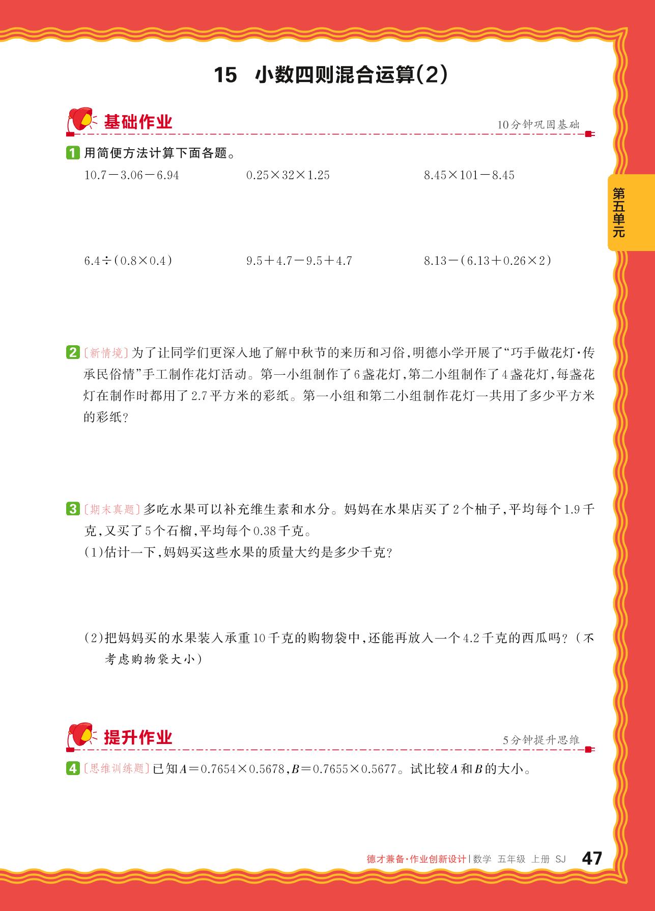 2024秋上册五年级数学苏教版 第五单元 小数乘法和除法——15. 小数四则混合运算(2)