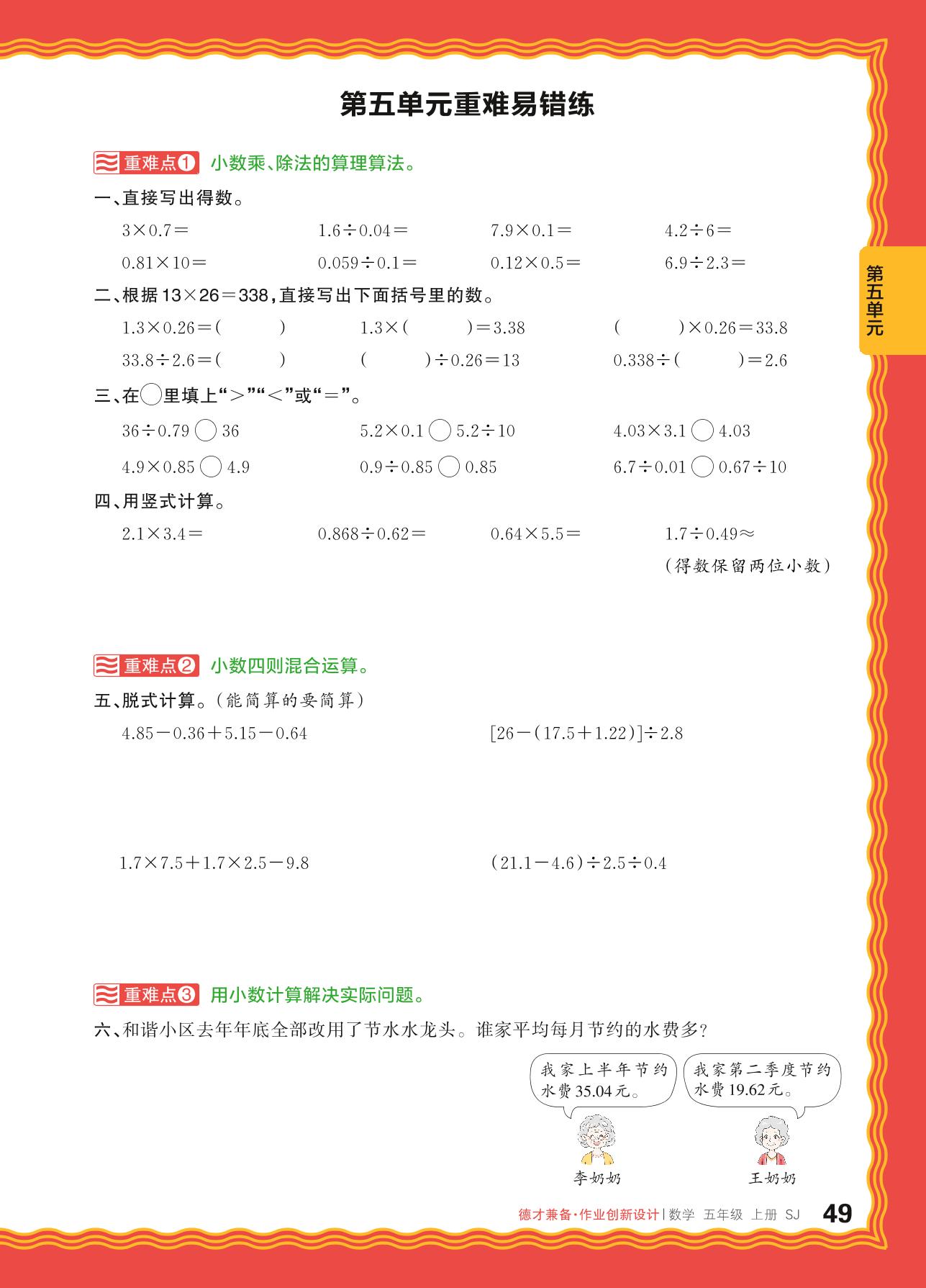 2024秋上册五年级数学苏教版 第五单元重难易错练