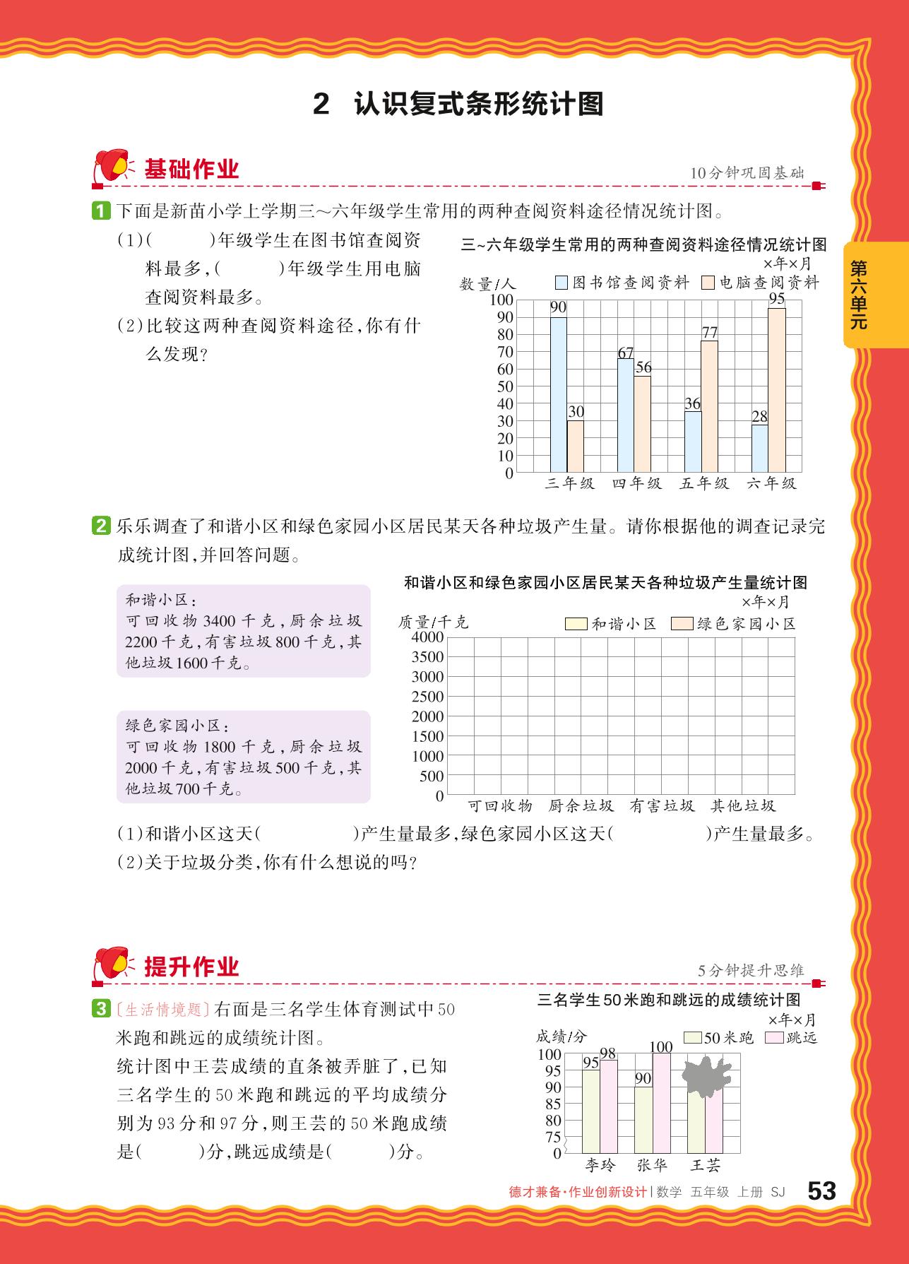 2024秋上册五年级数学苏教版 第六单元 统计表和条形统计图(二)——2. 认识复式条形统计图