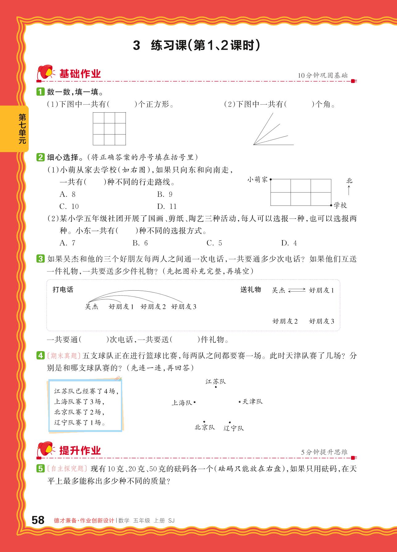 2024秋上册五年级数学苏教版 第七单元 解决问题的策略——3. 解决问题的策略练习课