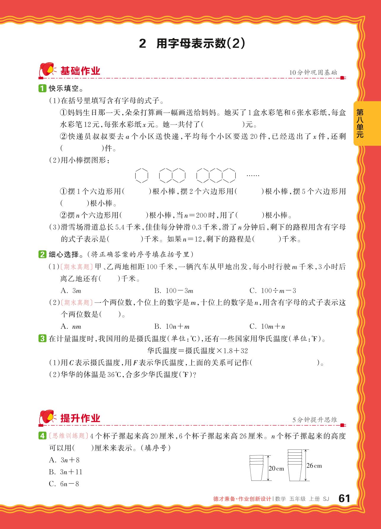 2024秋上册五年级数学苏教版 第八单元 用字母表示数——2. 用字母表示数(2)_R240820142452693