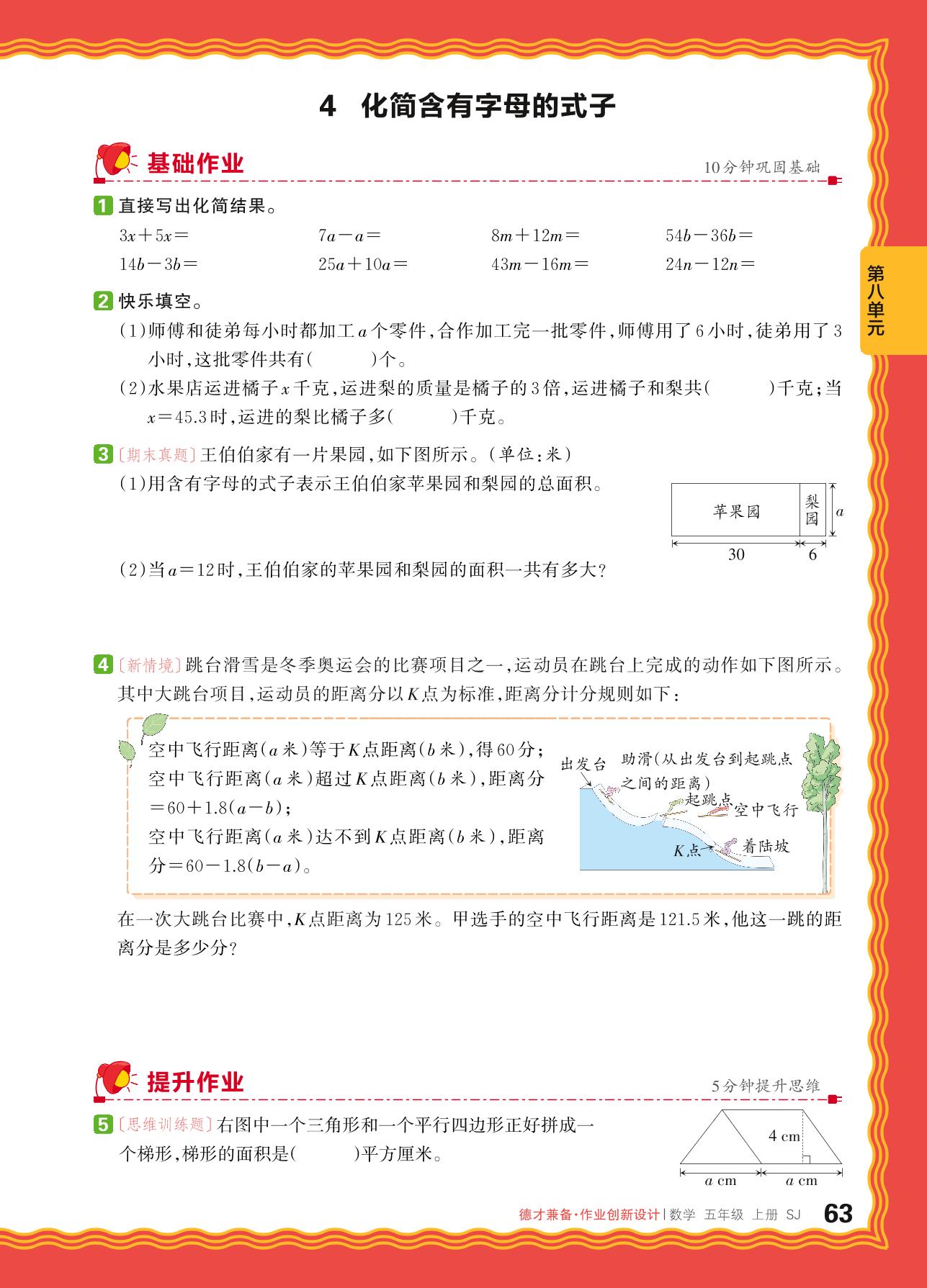 2024秋上册五年级数学苏教版 第八单元 用字母表示数——4. 化简含有字母的式子