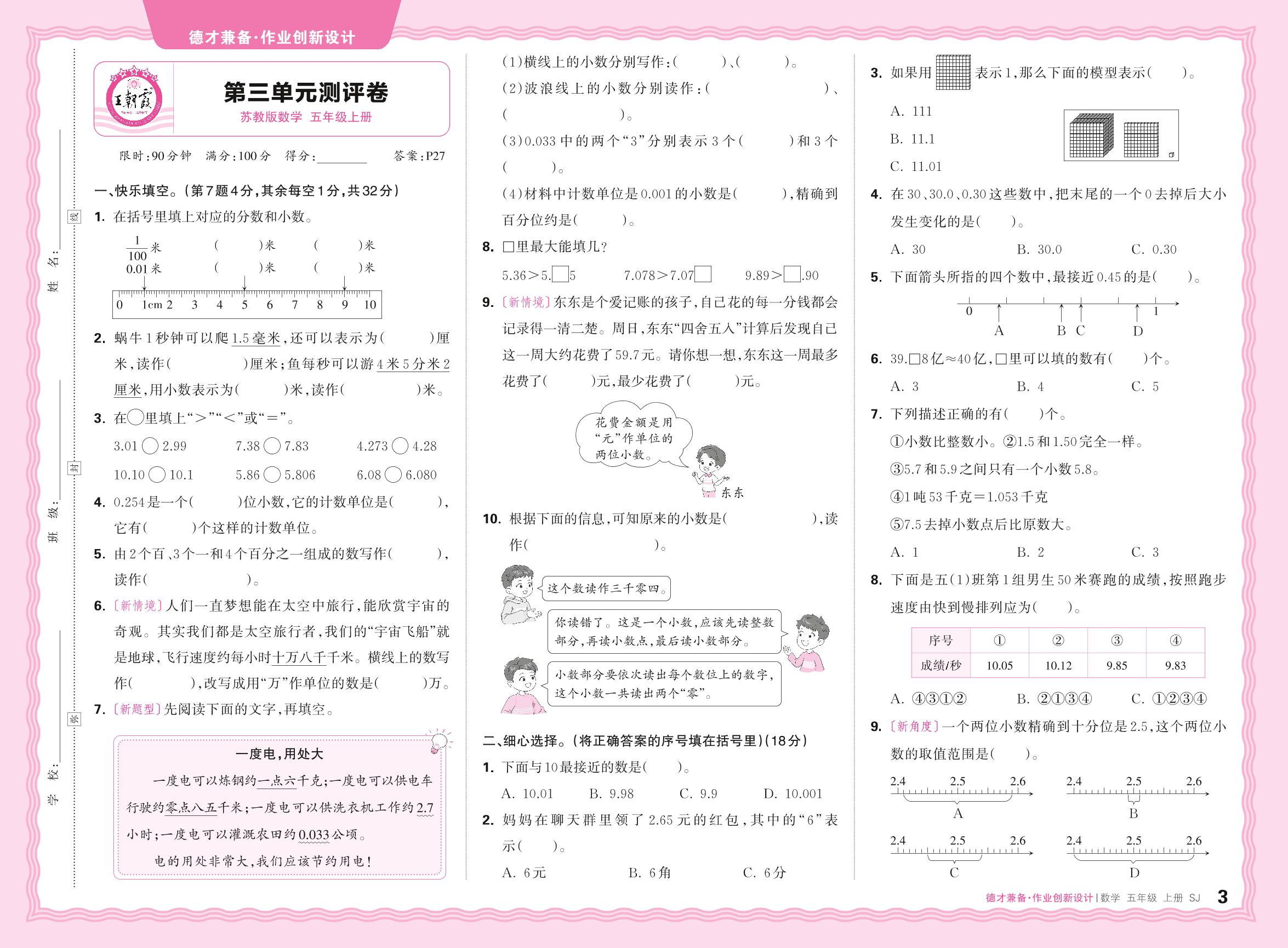 2024秋上册五年级数学苏教版 第三单元测评卷