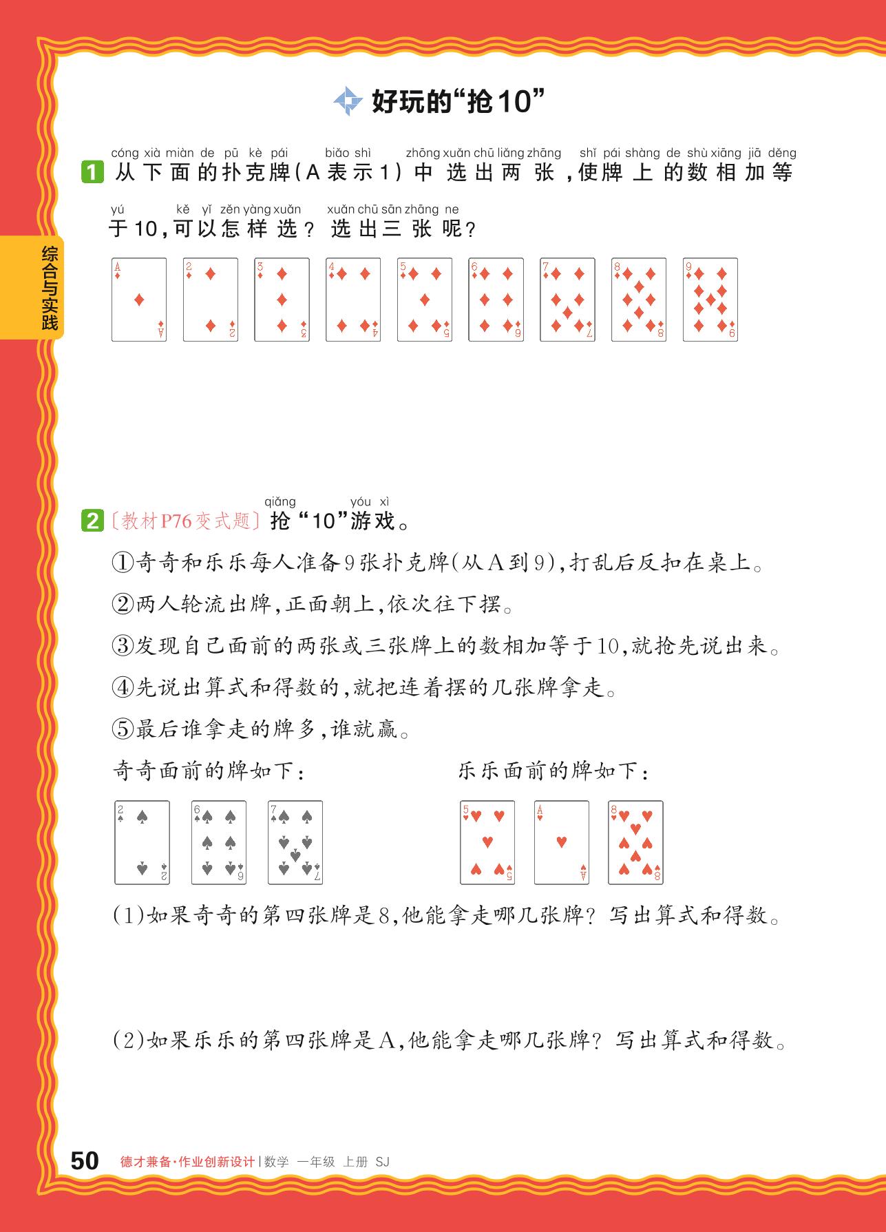 2024秋上册一年级数学苏教版 综合与实践——好玩的“抢10”