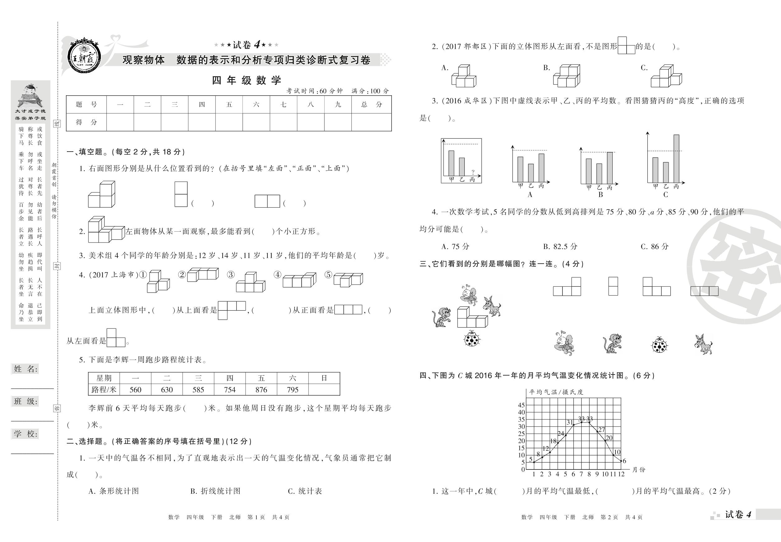 王朝霞期末专项卷——观察物体 数据的表示和分析专项归类诊断式复习卷四年级下册数学(北师版)_R210804160930【4】