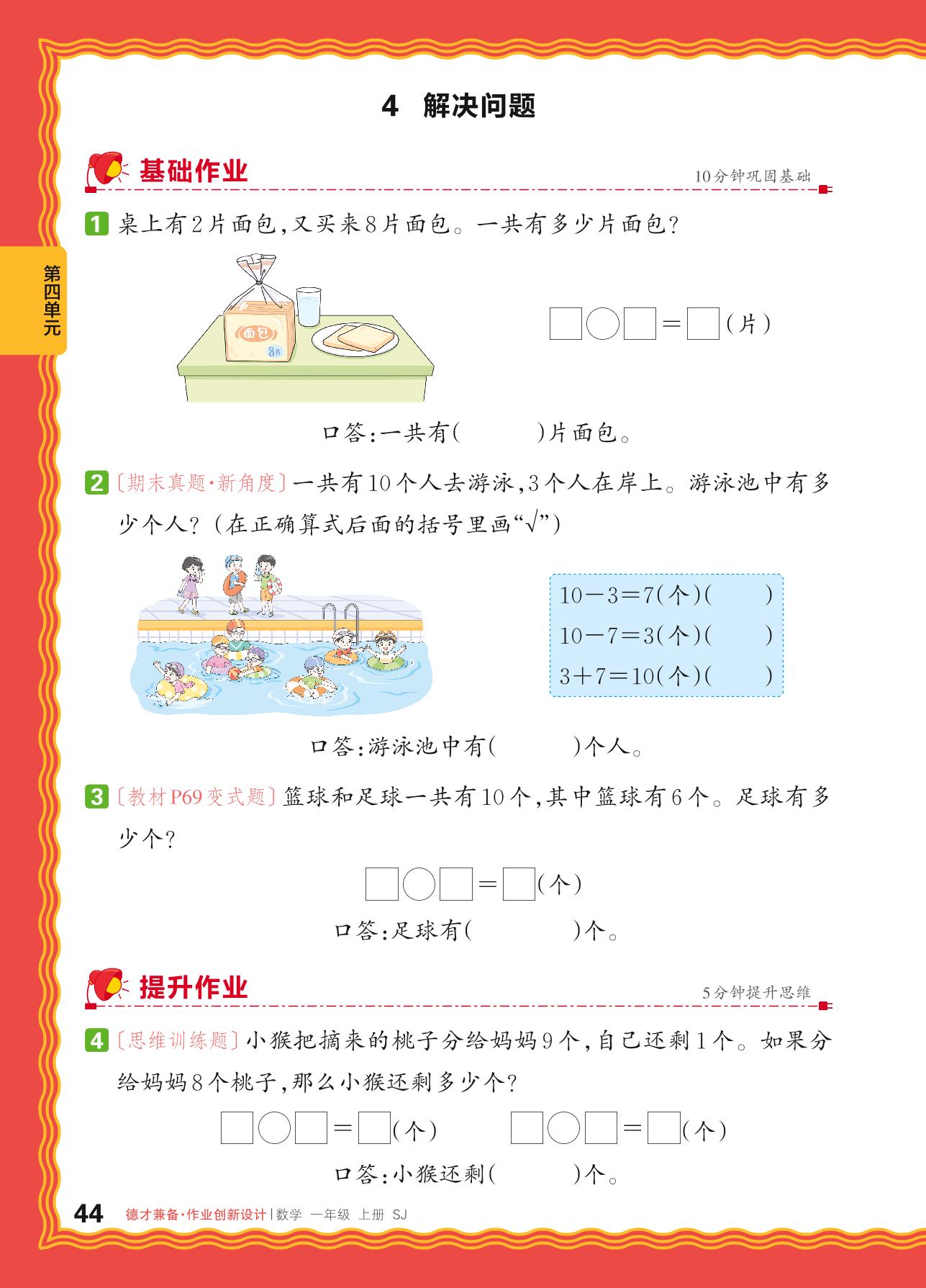 2024秋上册一年级数学苏教版 第四单元 10的认识和加减法——4. 解决问题