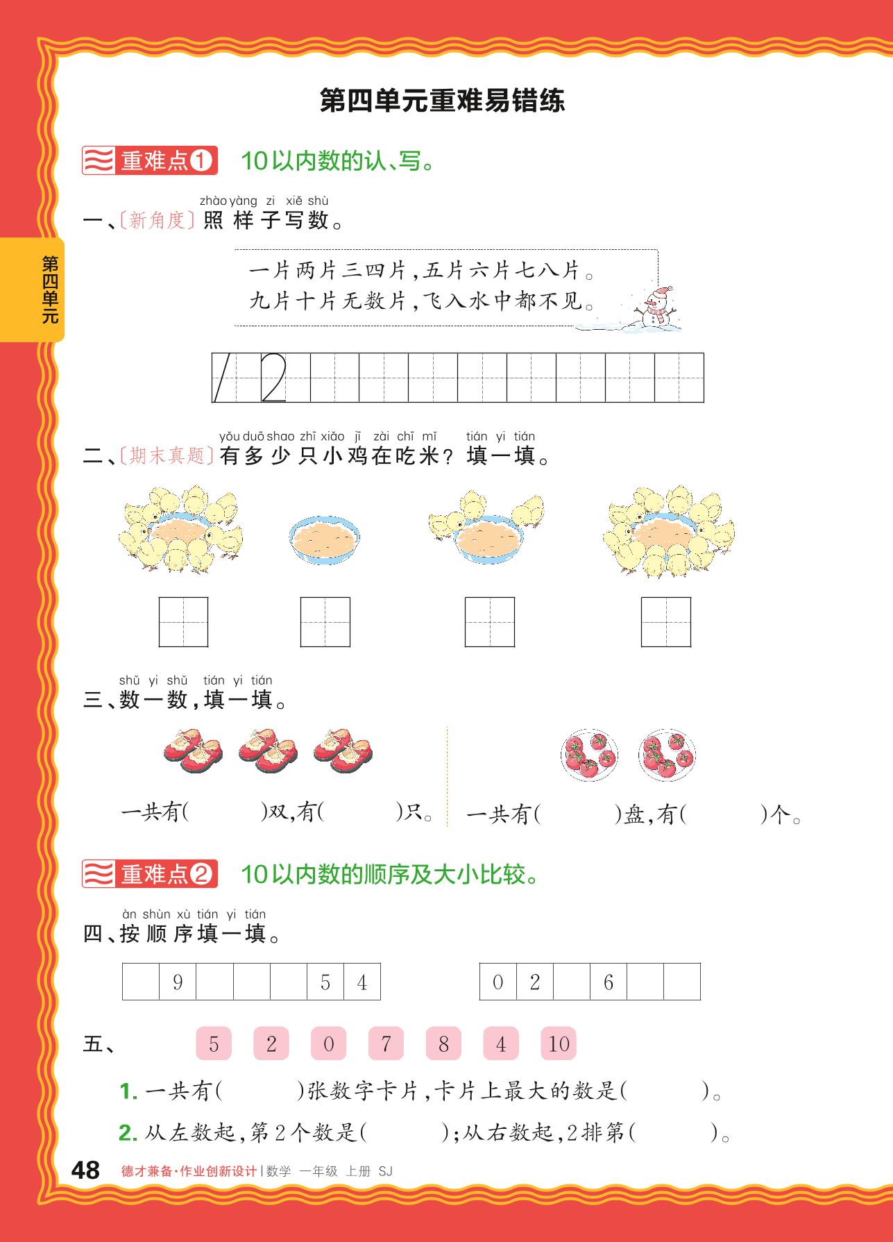 2024秋上册一年级数学苏教版 第四单元重难易错练
