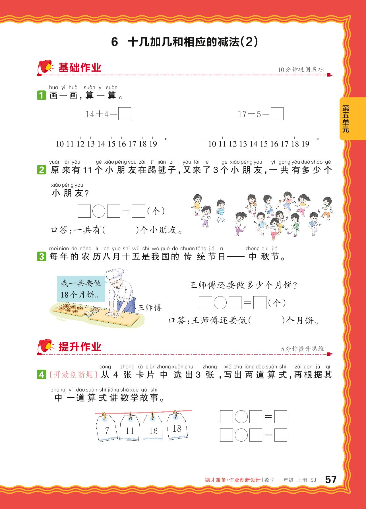 2024秋上册一年级数学苏教版 第五单元 认识11~19——6. 十几加几和相应的减法(2)