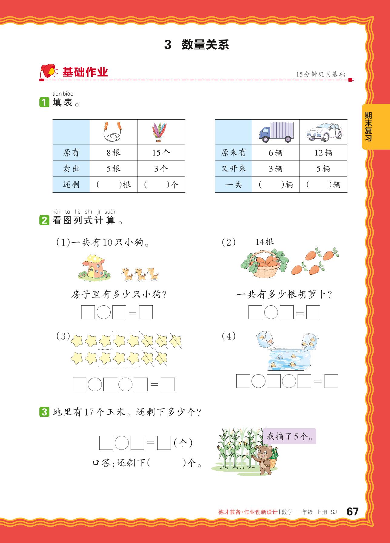 2024秋上册一年级数学苏教版 期末复习——3. 数量关系