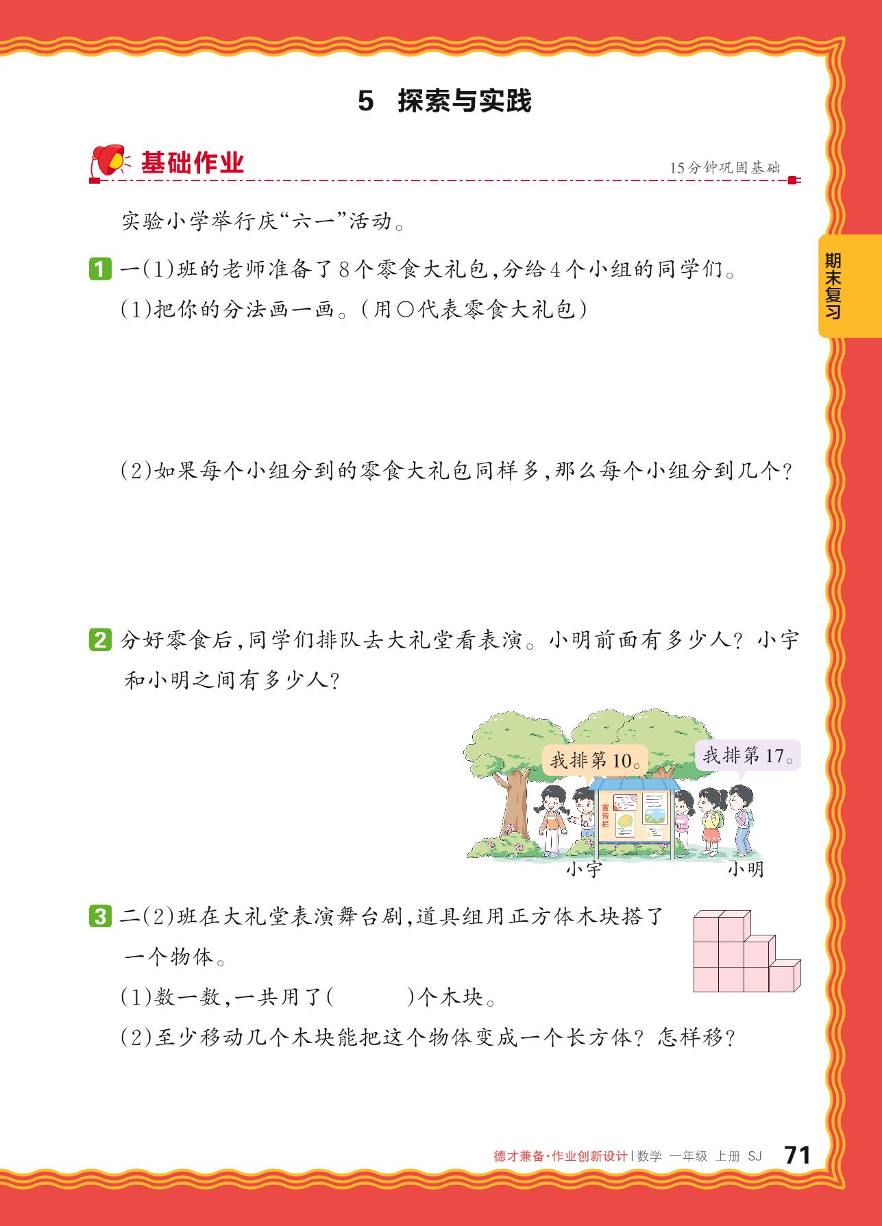 2024秋上册一年级数学苏教版 期末复习——5. 探索与实践