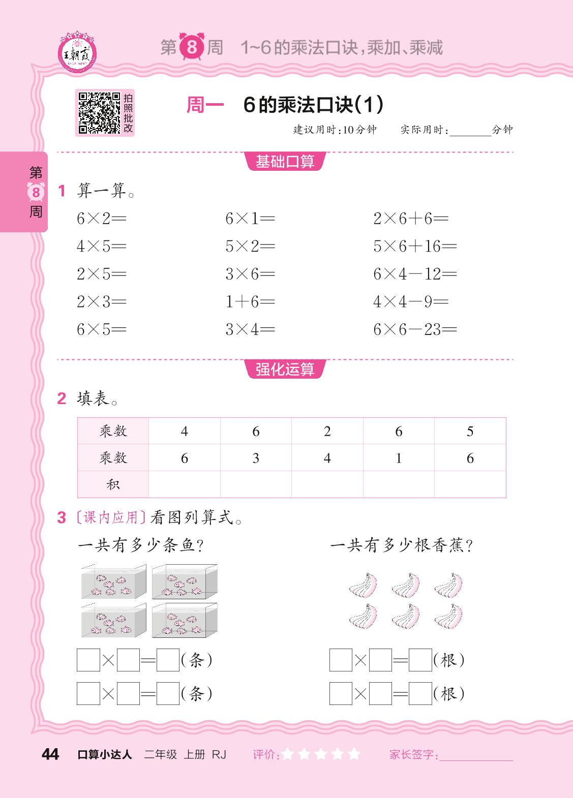 2024秋上册二年级数学人教版 口算计算专练 第8周
