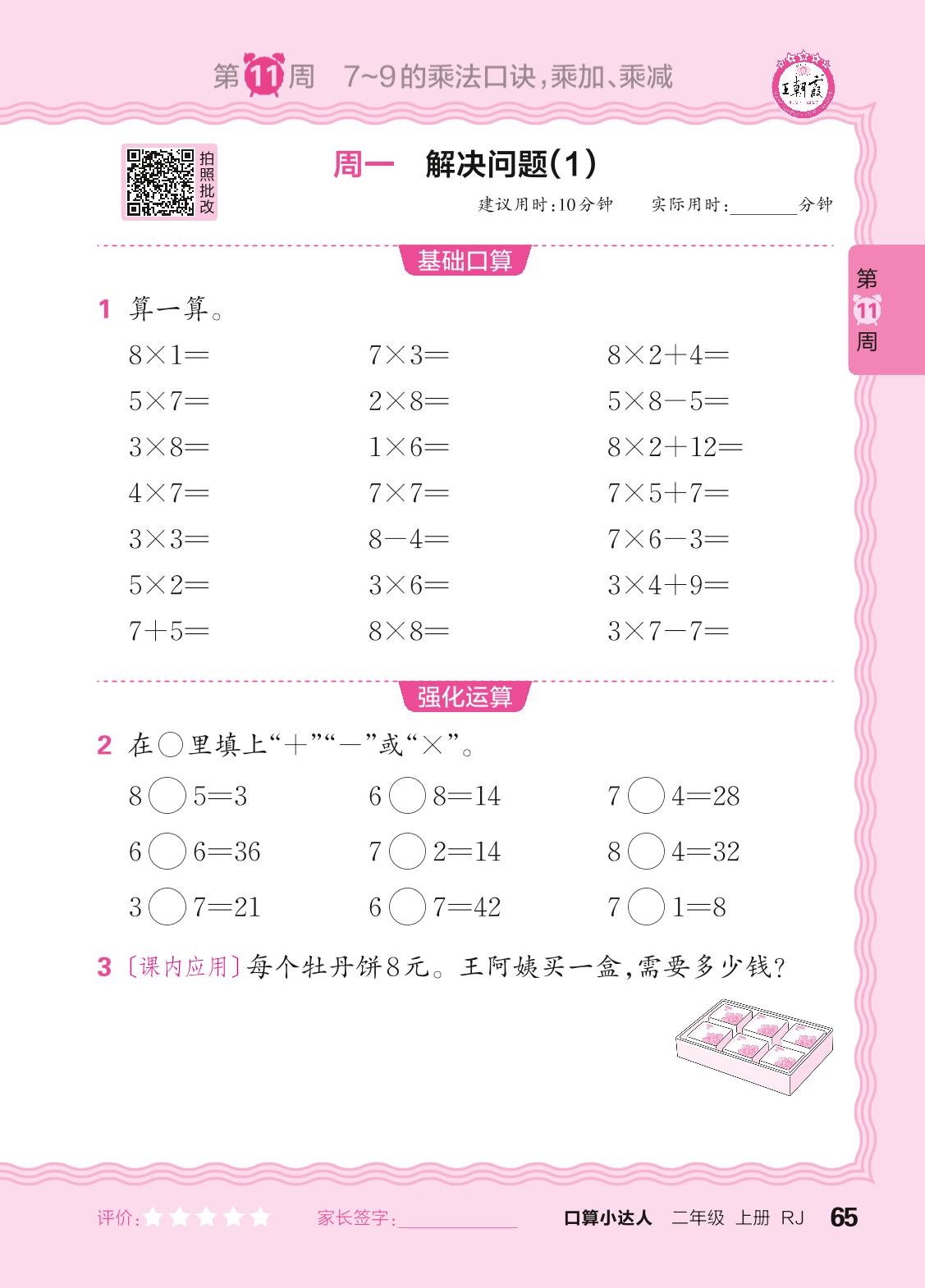2024秋上册二年级数学人教版 口算计算专练 第11周